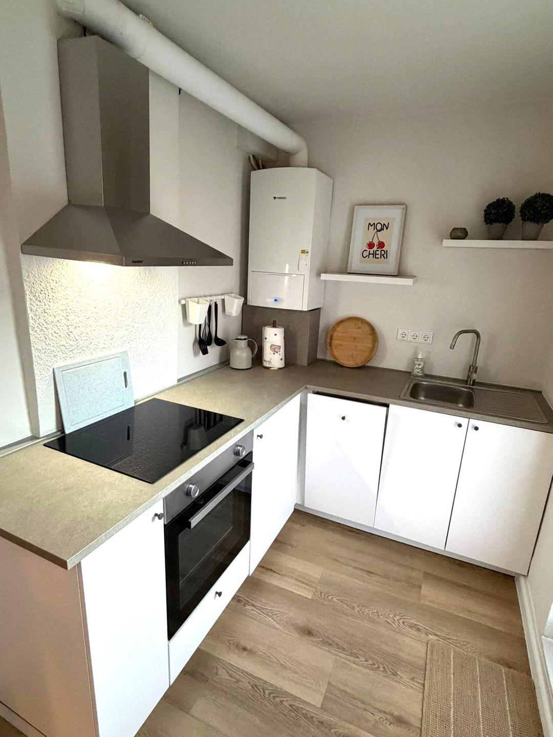 Die geschlossene Küche ist funktional ausgestattet und bietet gute Voraussetzungen für die Selbstversorgung. Zur Verfügung stehen ein 4-Platten-Herd, Backofen, Kühlschrank mit integriertem Gefrierfach, Spülmaschine, Kaffeemaschine, Wasserkocher, Toaster sowie Küchenutensilien, Geschirr, Besteck und Geschirrhandtücher. Sie finden eine vollausgestattete Küche vor, sodass Sie Ihren Aufenthalt von Anfang an unkompliziert organisieren können.