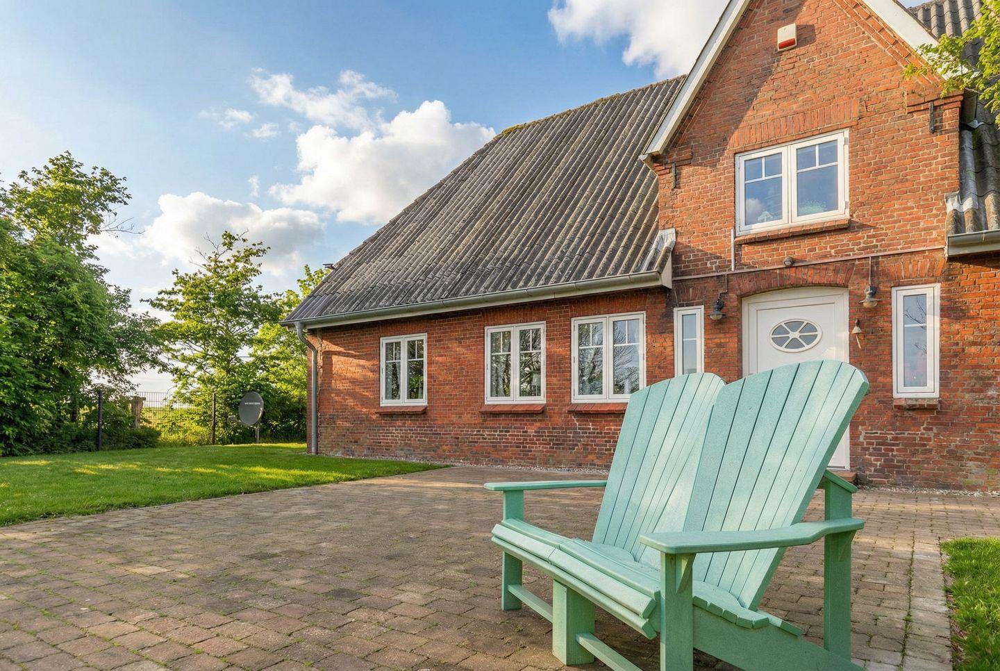Dieses Ferienhaus 'Juwel am Deich' in Emmelsbüll-Horsbüll bietet Ruhe und Erholung. 155 qm, 8 Personen, 3 Schlafzimmer, Kinderbett, WLAN, 2 Duschbäder, großer Garten, Strandkörbe, Grill, Parkplätze. Genießen Sie die Nähe zum Wattenmeer und Sylt-Blick.