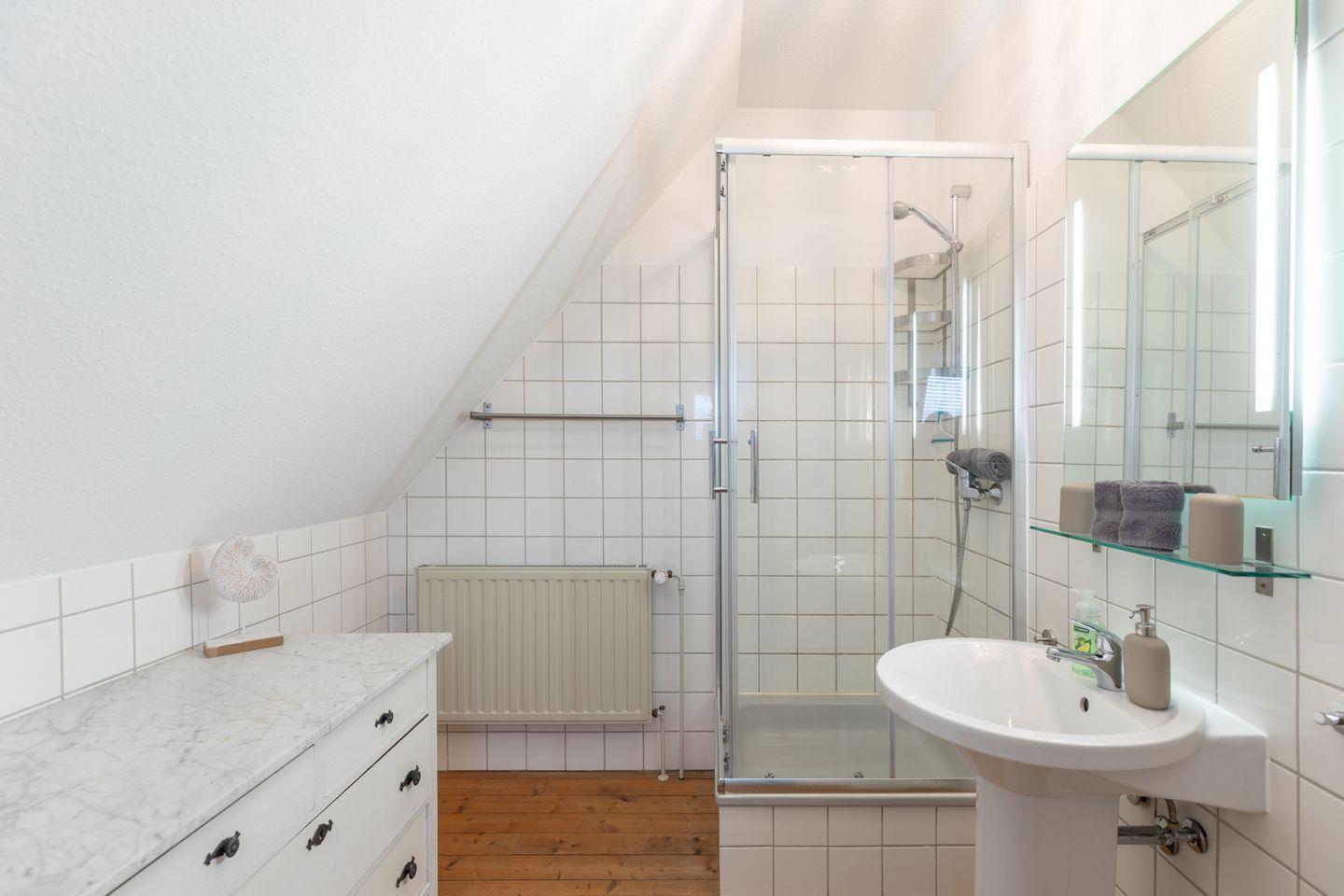 Zwei Duschbäder (eines im Obergeschoss, eines im Erdgeschoss) runden das Bild ab. Zusätzlich steht eine Waschmaschine und ein Trockner für Sie bereit.