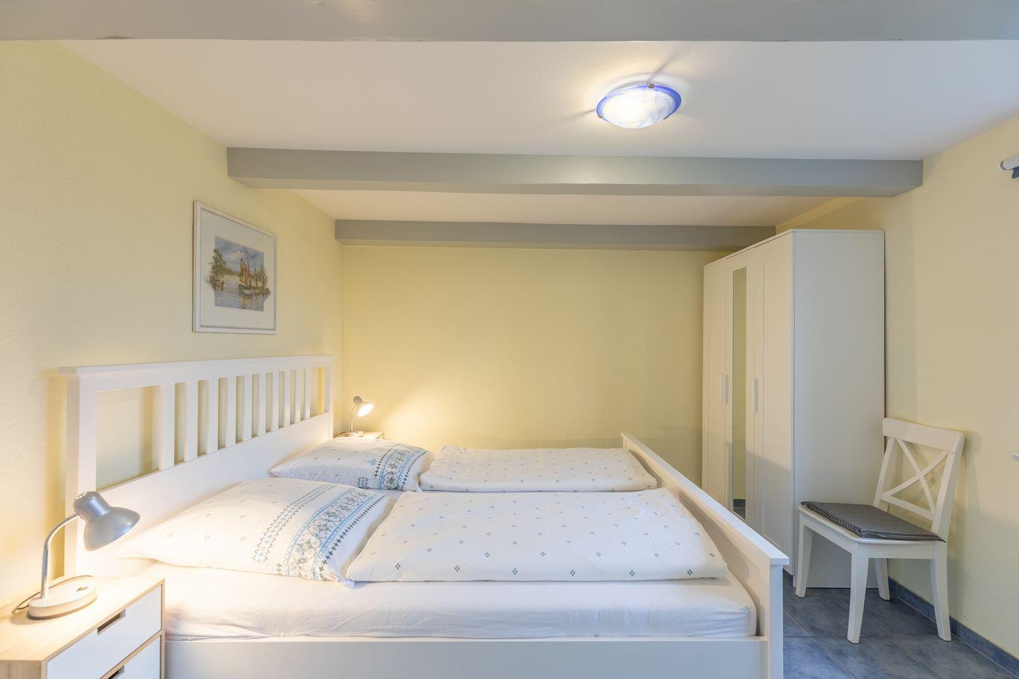 Das 150 qm große Ferienhaus bietet drei Schlafzimmer mit Platz für max. 6 Erwachsene. Das Schlafzimmer „Deichblick“ im EG mit einem 180 cm breiten Doppelbett und direktem Zugang zum Duschbad, das 2. Schlafzimmer im Apartment mit zwei Einzelbetten (90 × 200) und das „Blaue-Zimmer“ mit zwei Einzelbetten (90 × 200).