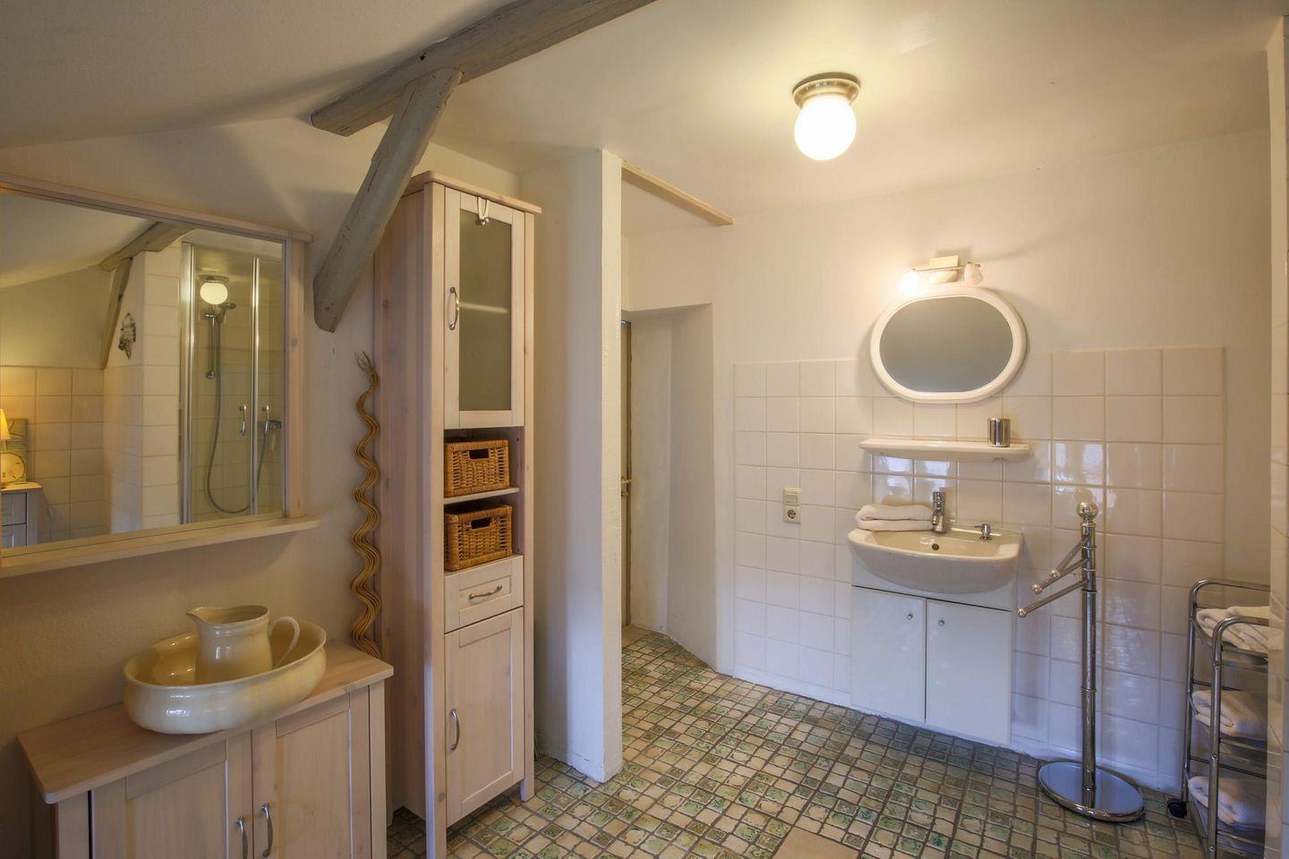 Die geräumigen und schicken Duschbäder runden das Bild ab. Zur Ausstattung gehört auch eine Waschmaschine. Zu dem Haus gehört ein großer, eingezäunter Garten mit altem Baumbestand, eine Spielecke für Kinder, eine Terrasse mit Gartenmöbeln, auf der Sie den Tag ausklingen lassen können.