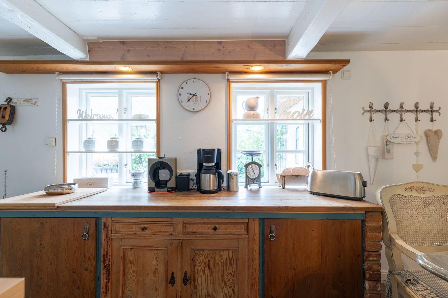 Erleben Sie das romantische Ferienhaus Witthuis - Perle am Deich in Emmelsbüll-Horsbüll, Nordfriesland. Das reetgedeckte Haus von 1840 bietet Platz für bis zu 6 Personen und liegt nur wenige Schritte von der Nordseeküste und dem Wattenmeer entfernt. Das 140 qm große Haus im Landhausstil verfügt über 3 Schlafzimmer, ein gemütliches Wohnzimmer mit Kamin, eine gut ausgestattete Küche und eine sonnige Terrasse. Der große eingezäunte Garten ist ideal für Familien und Haustiere.