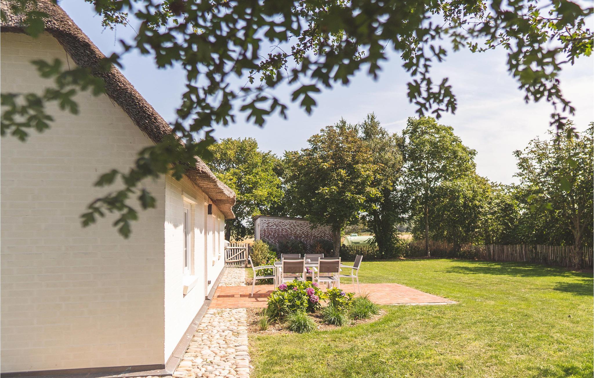 Erleben Sie ein reetgedecktes Ferienhaus mit Kamin, Garten und Meerblick in Emmelsbüll-Horsbüll, ideal für entspannte Urlaubstage.