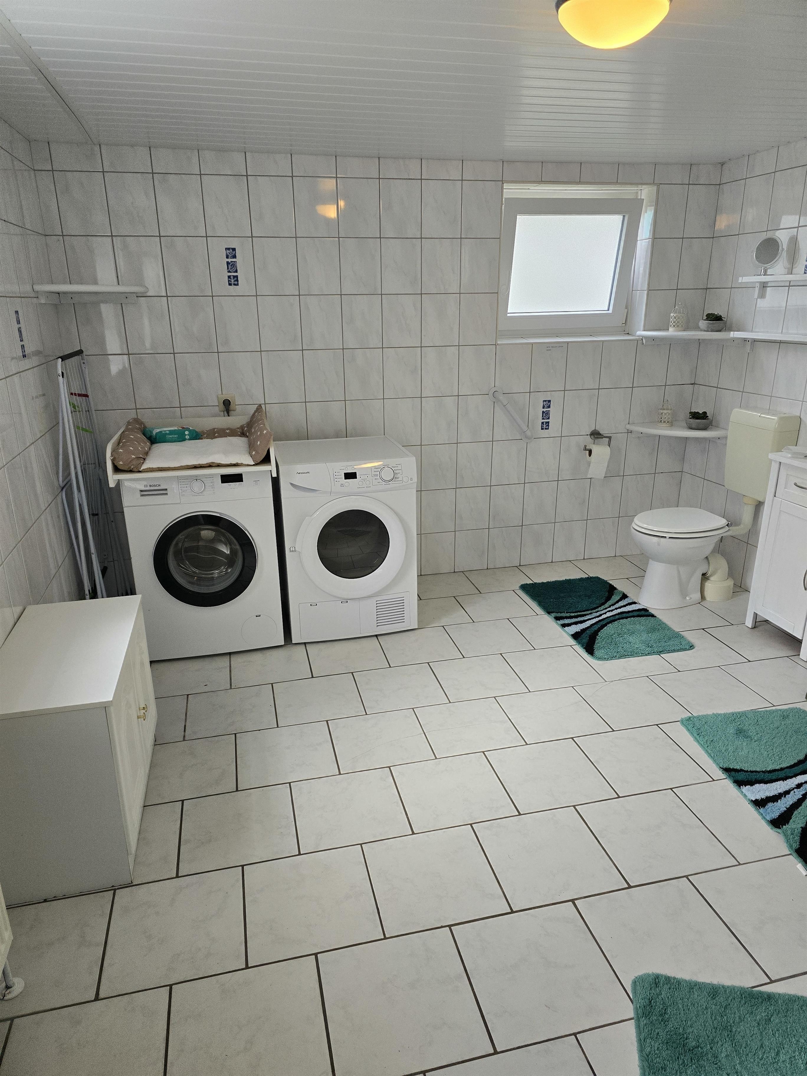 Die Wohnung hat eine vollausgestattete separate Küche und ein Abstellraum für diverse Sachen oder Fahrräder. Ein großes Badezimmer mit einer Waschmaschine , die im Preis mit enthalten ist. Außerdem im Preis enthalten Bettwäsche und Handtücher.