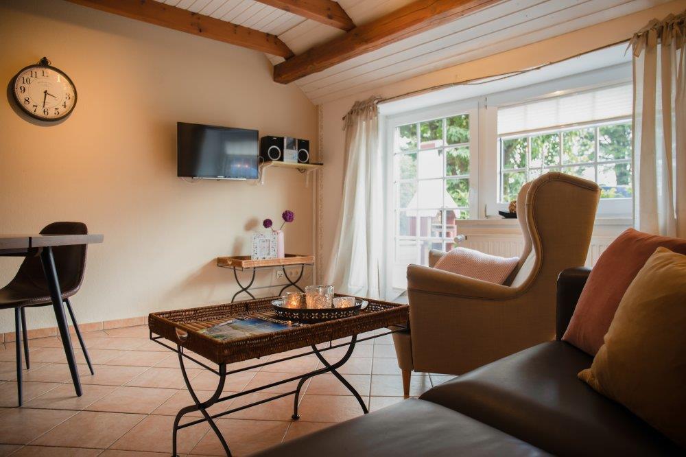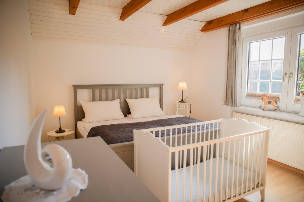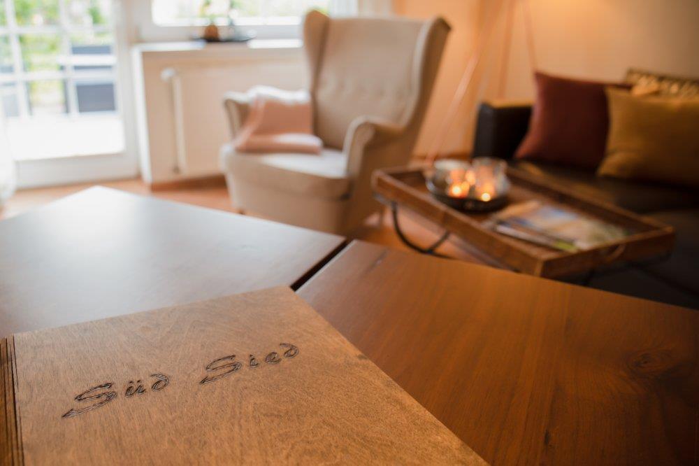 Unsere ebenerdige ?Süd Sied? Wohnung verfügt über eine Terrasse und ein Wohnzimmer mit gemütlicher Sofalandschaft, einen 81 cm Flachbildschirm Sat-TV, Stereoanlage und Radio sowie einen grosszügigen Essbereich, die große Küche verfügt über zwei gut ausgestattete Küchenzeilen, u.a. eine Senseo- und eine Kaffeemaschine. Es gibt 2 Schlafräume, ein Schlafzimmer hat 1 Doppelbett und das zweite Schlafzimmer hat 2 Einzelbetten. Im Badezimmer befindet sich eine ebenerdige befahrbare Dusche, ein WC mit Handlauf und ein Wickelschrank.Für unsere kleinen Gäste stehen 1 Gitterbett, 1 Kinderhochstuhl, 1 Nachtlicht,1 Kinderhocker für das Waschbecken sowie Spiele und Bücher zur freien Nutzung bereit.