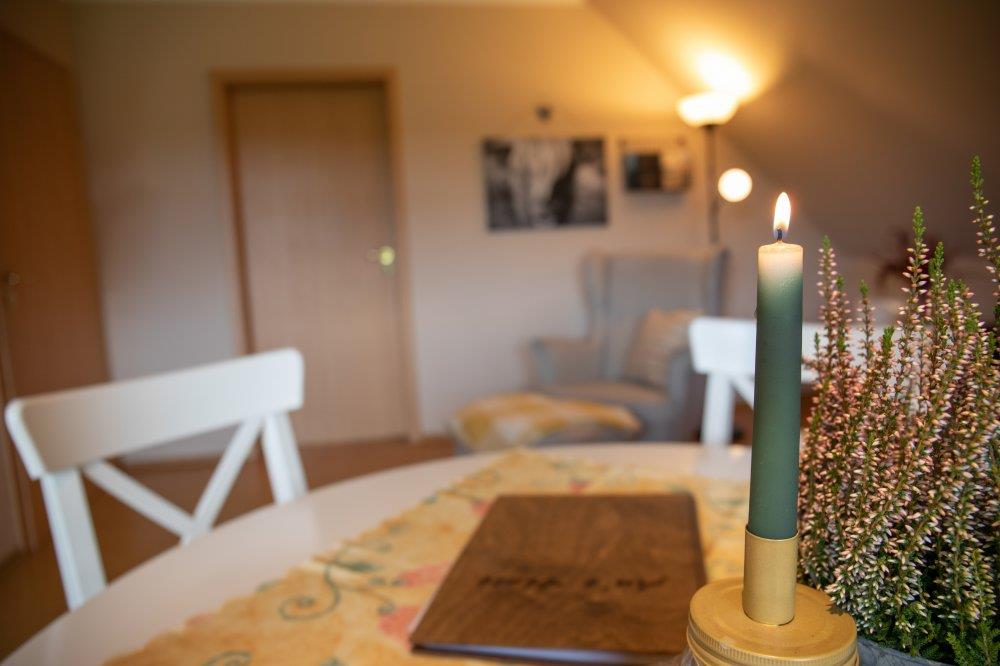 Unsere gemütliche Dachgeschoss Wohnung ?An't Holt? mit 65 qm verfügt über eine eigene Terrasse im Erdgeschoss die Sie bequem über das Treppenhaus erreichen. Ihre Ferienwohnung verfügt über einen offenen Wohn-/Essbereich mit gut ausgestatteter Küchenzeile, u.a. eine Kaffeemaschine- und einen Kaffeevollautomaten, einen 81 cm Flachbildschirm Sat-TV, Stereoanlage und Radio. Ein Schlafzimmer hat 1 Doppelbett und 1 Einzelbett und das zweite Schlafzimmer hat 2 Einzelbetten. Im Badezimmer mit Fenster, Dusche und WC befindet sich auch ein Wickelschrank.Für unsere kleinen Gäste stehen 1 Gitterbett, 1 Kinderhochstuhl, 1 Nachtlicht,1 Kinderhocker für das Waschbecken sowie Spiele und Bücher zur freien Nutzung bereit.