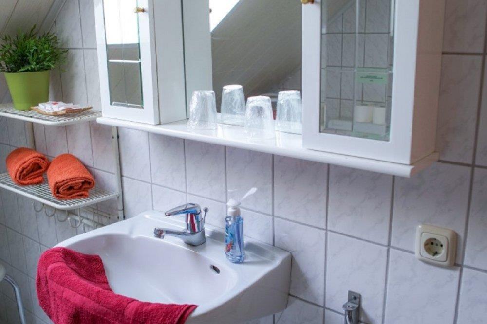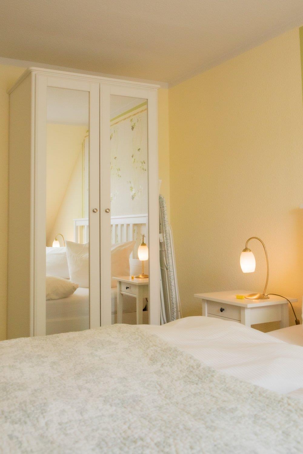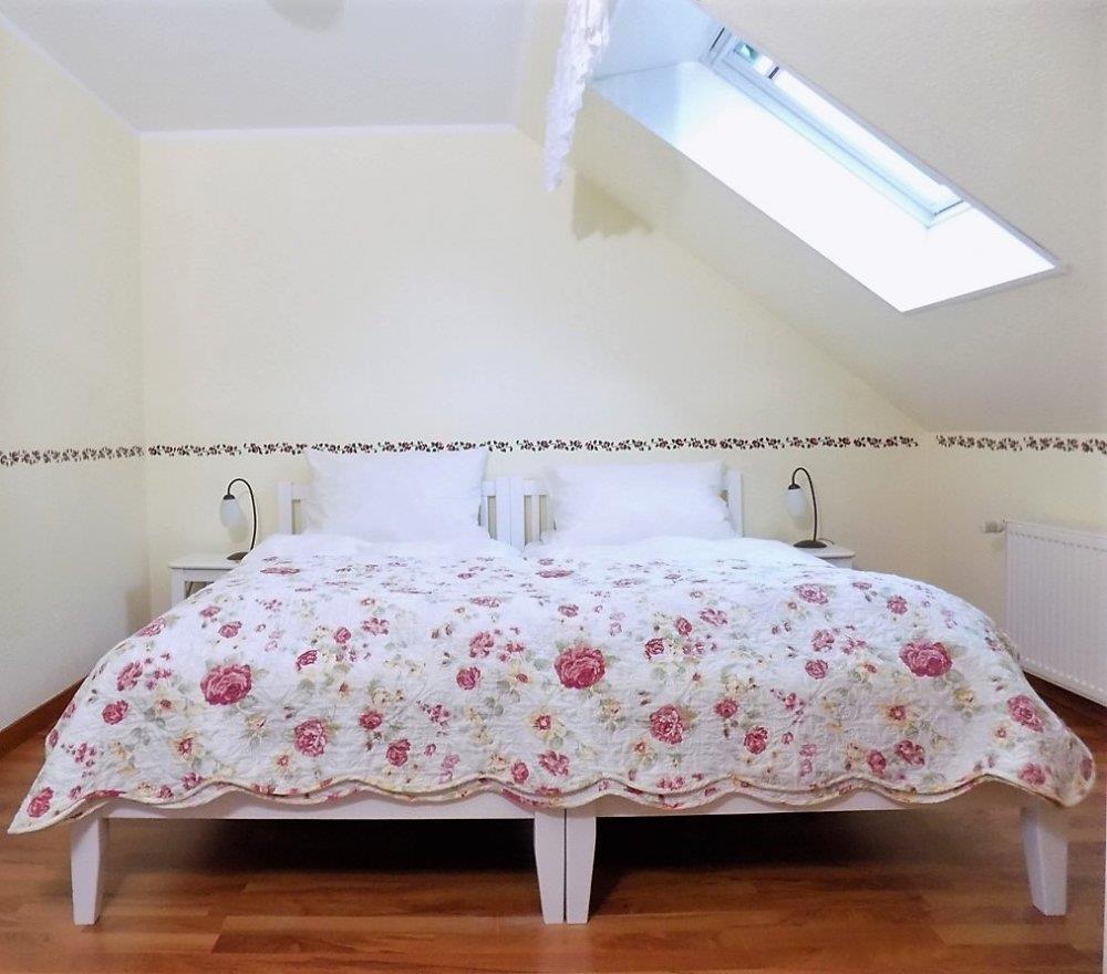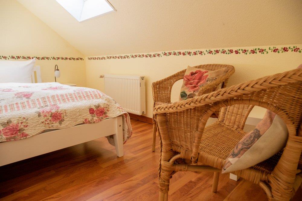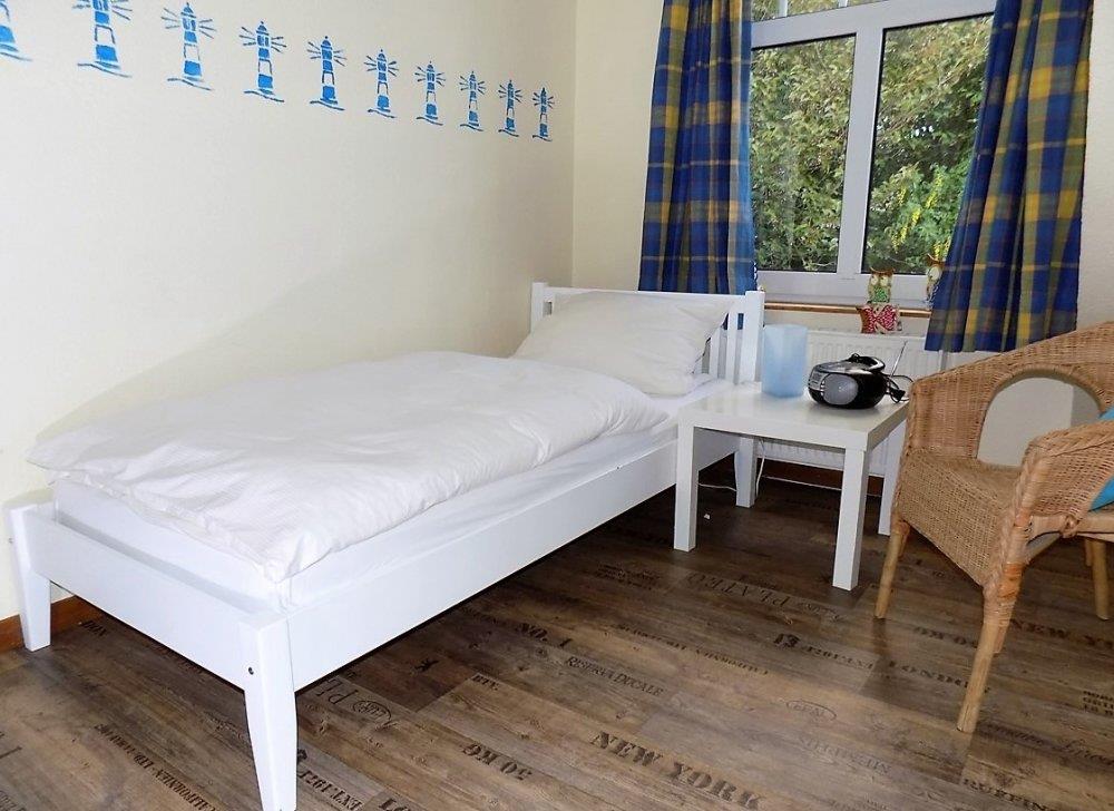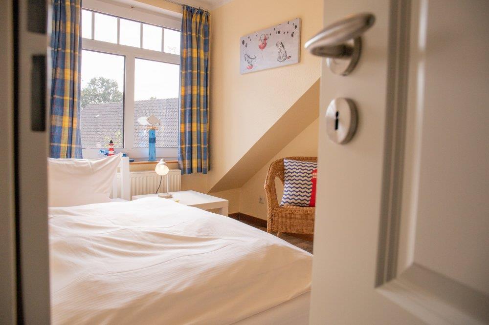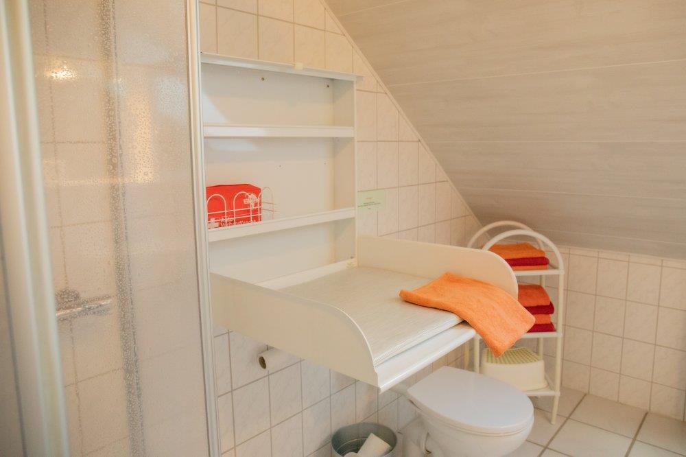Unsere großzügige Dachgeschoss Wohnung ?Övert Schkür? mit 70 qm verfügt über eine eigene Terrasse im Erdgeschoss die Sie bequem über das Treppenhaus erreichen. Ihre Ferienwohnung verfügt über ein Wohnzimmer mit gemütlicher Sofalandschaft, einen 81 cm Flachbildschirm Sat-TV, Stereoanlage und Radio sowie einen Essbereich, die kleine Küche verfügt über eine gut ausgestattete Küchenzeile, u.a. eine Senseo- und eine Kaffeemaschine, Es gibt 3 Schlafräume, ein Schlafzimmer hat 1 Doppelbett, das zweite Schlafzimmer hat 2 Einzelbetten und das dritte Schlafzimmer hat 1 Einzelbett. Im Badezimmer mit Fenster, Dusche und WC befindet sich auch ein Wickelschrank. Für unsere kleinen Gäste stehen 1 Gitterbett, 1 Kinderhochstuhl, 1 Nachtlicht,1 Kinderhocker für das Waschbecken sowie Spiele und Bücher zur freien Nutzung bereit.