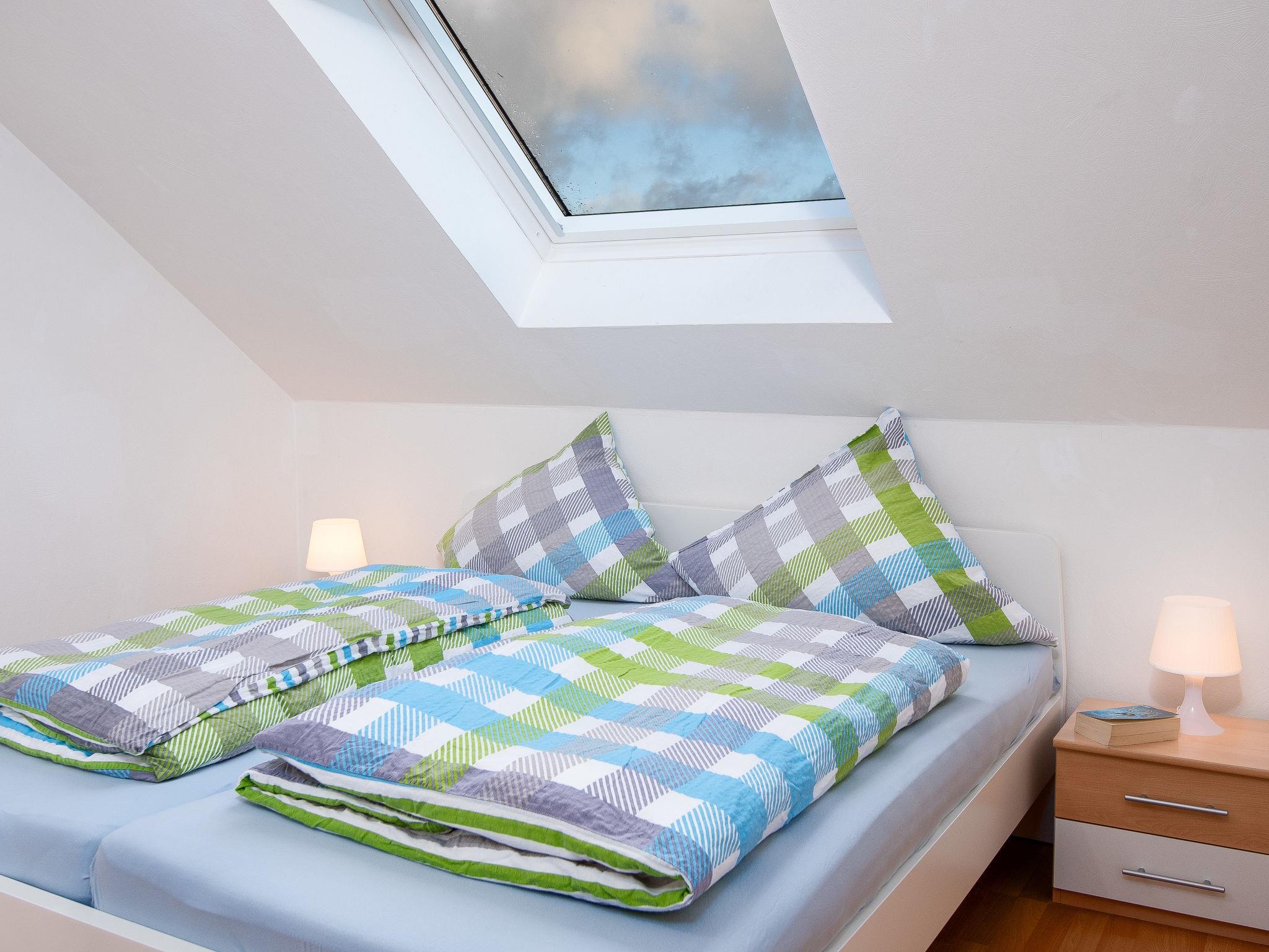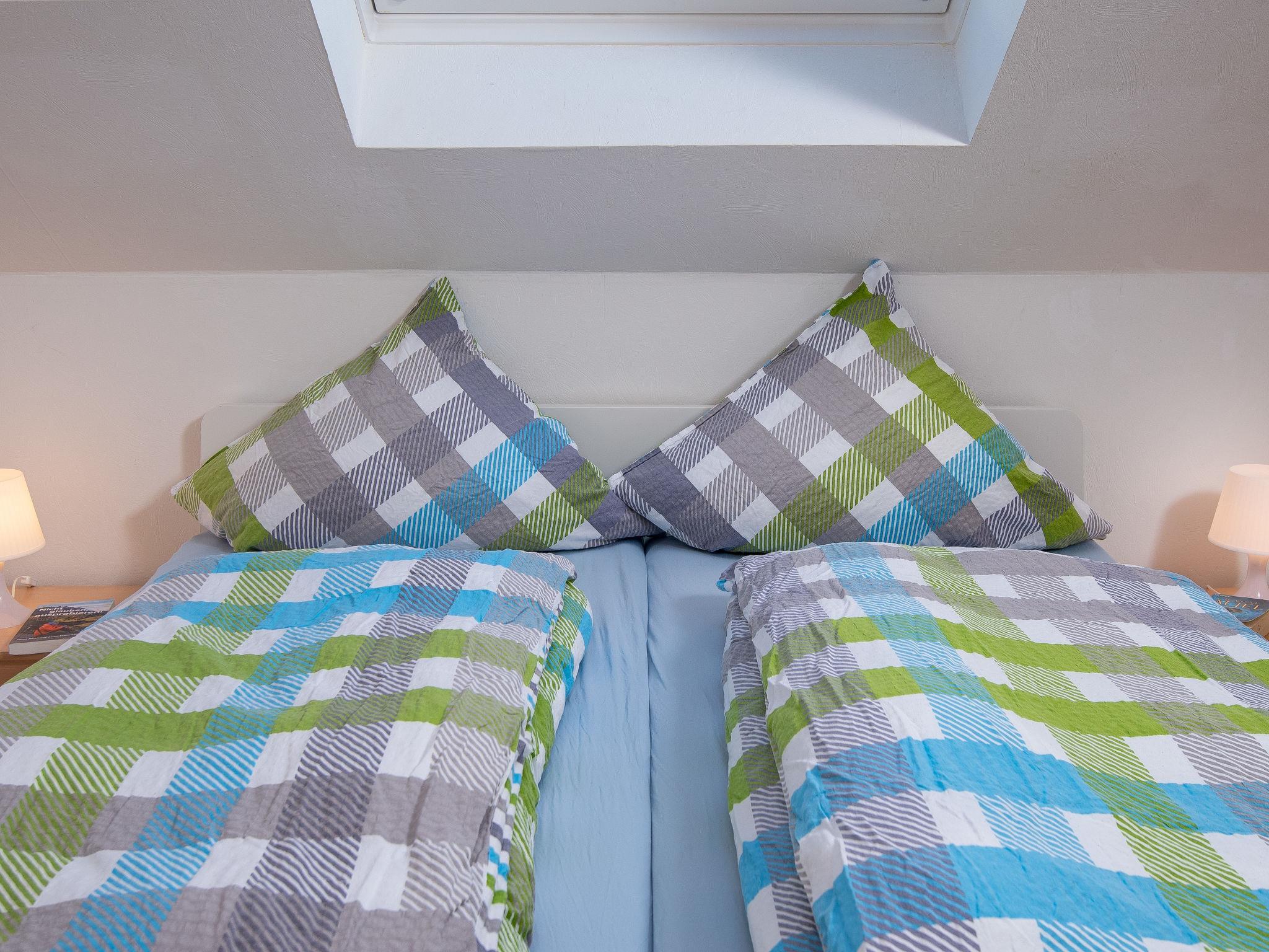 2-Zimmer-Wohnung 55 m2 im 1. Stock. Objekt geeignet für 2 Erwachsene + 1 Kind. Abgeschrägt, gemütlich eingerichtet: Wohn-/Esszimmer 24 m2 mit 1 Diwanbett (140 cm, Länge 200 cm), Sat-TV (Flachbildschirm), CD. Ausgang zum Balkon. 1 Zimmer 11 m2 mit 1 Doppelbett (2 x 90 cm, Länge 200 cm). Kochnische (4 Kochplatten, Backofen, Mikrowelle, elektrische Kaffeemaschine). Dusche/WC. Grosser Balkon, Südlage. Balkonmöbel. Zur Verfügung: Kinderhochstuhl. Internet (Wireless LAN, gratis). Blu-Ray Player. Bitte beachten: Nichtraucher-Unterkunft. Rauchmelder.