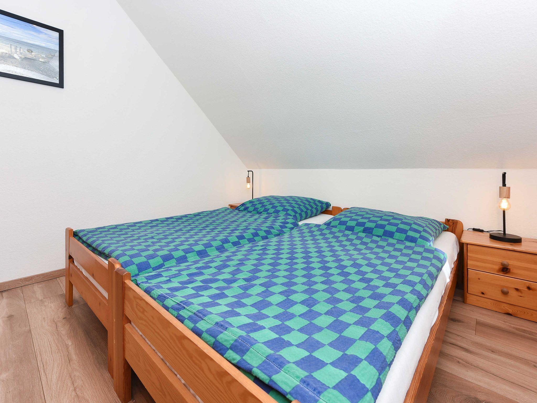 Größe ca. 60 Quadratmeter, Wohnraum mit integrierter Küche, Schlafzimmer, zweites separates, Schlafzimmer/Kinderzimmer, Badezimmer mit Dusche, Waschtisch und WC, Obergeschoss, Terrasse, Koffer-/Abstellraum, Hauswirtschaftsraum mit Waschmaschine und Wäschetrockner, optimal für 2 bis 4 Personen und zusätzlich ein Kleinkind.