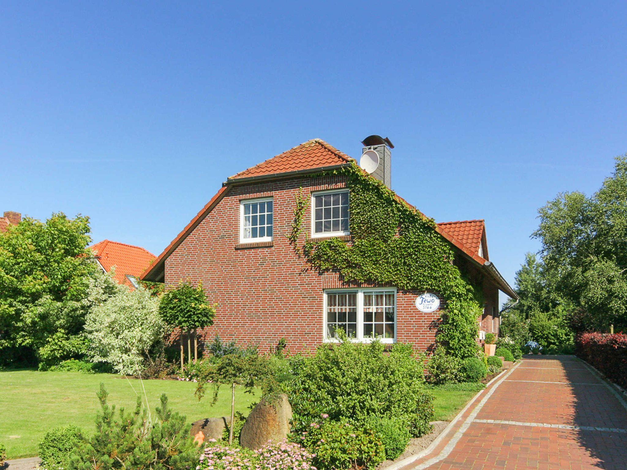 Gemütliche Ferienwohnung im Haus Solea mit Garten, Balkon und Blick auf Bensersiel, ideal für erholsame Nordseeferien.