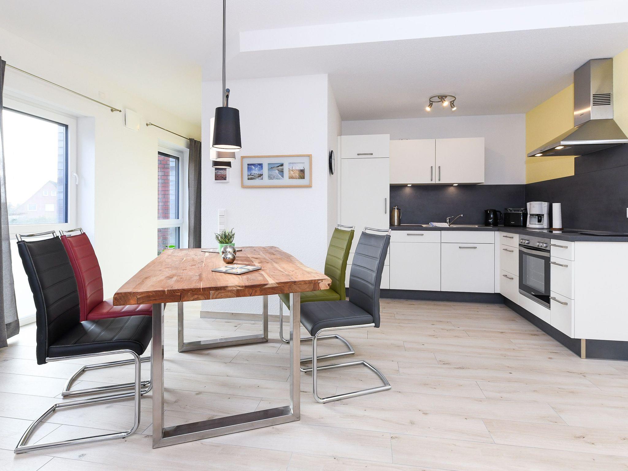 Die Wohnung ist sehr geschmackvoll und stilsicher eingerichtet, dabei sehr gemütlich und technisch hervorragend ausgestattet. Auf ungefähr 85Quadratmetern finden Sie alles, was Sie für einen rundum schönen Urlaub benötigen, z. B. eine sehr moderne Küche mit Geschirrspülmaschine und Mikrowelle und Ceran-Herd mit Backofen.