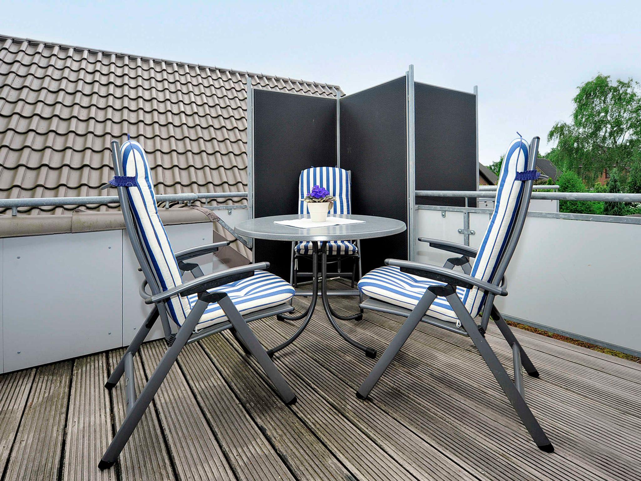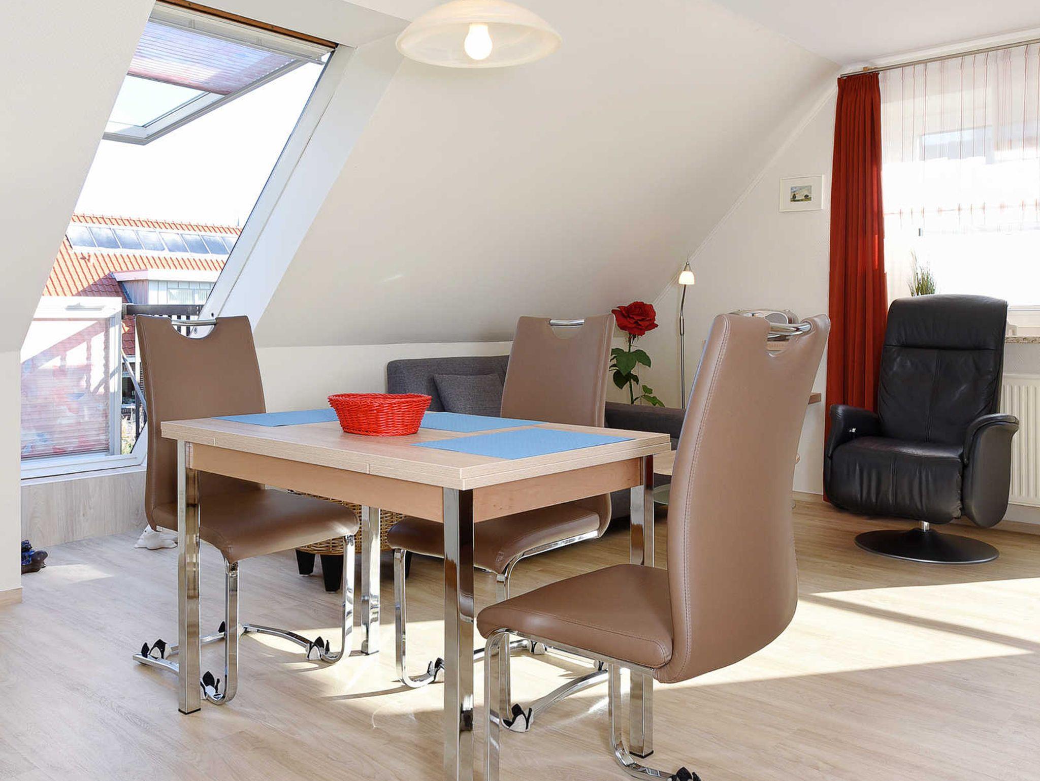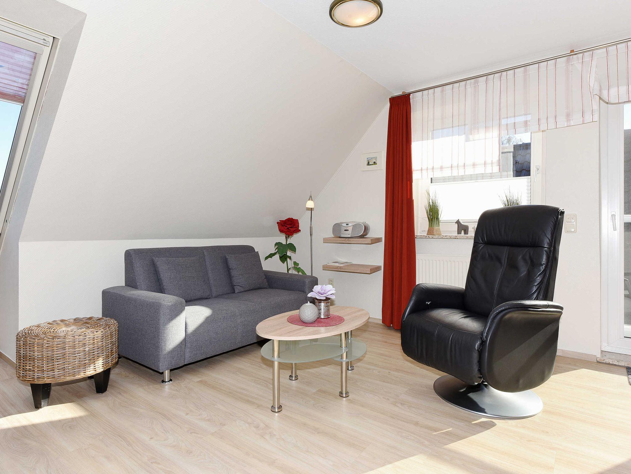 Die geschmackvollen und gemütlichen Ferienwohnungen sind jeweils ungefähr 50 Quadratmeter groß und für einen schönen Nordseeurlaub für zwei bis vier Personen bestens geeignet. Sie ist sehr freundlich gestaltet sowie sehr komfortabel ausgestattet und eingerichtet. Sie finden hier alles, was Sie für einen rundum schönen Urlaub benötigen, z. B. verfügen alle drei Ferienwohnungen über einen möblierten Balkon bzw. eine über eine Dachterrasse mit schönen Gartenmöbeln.