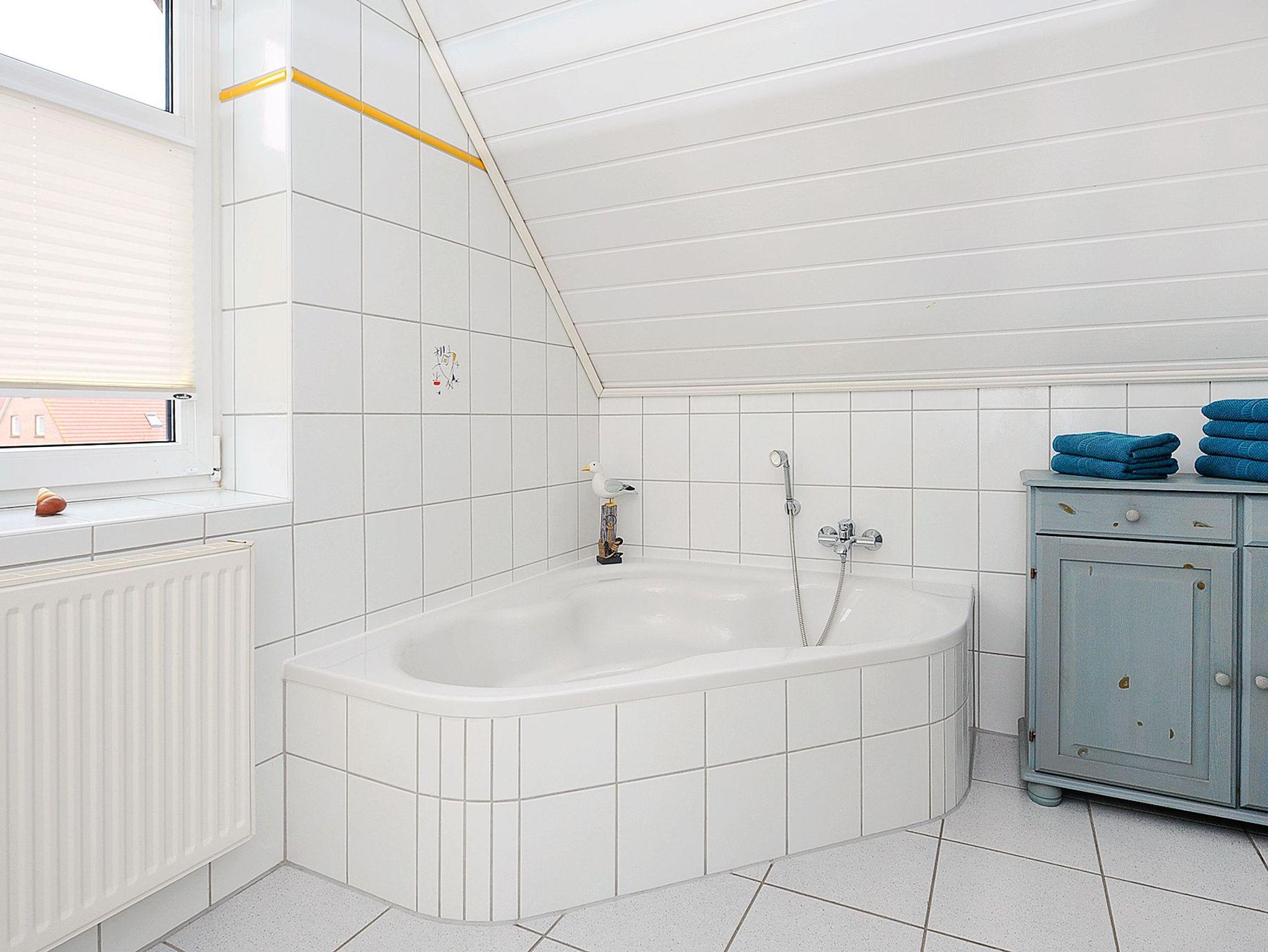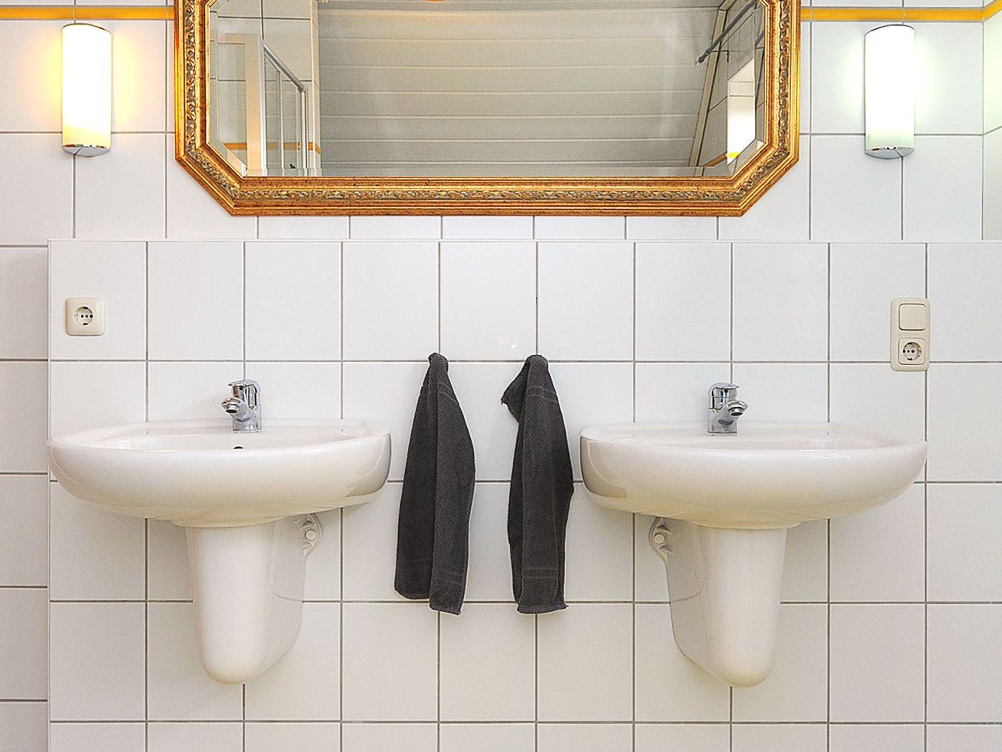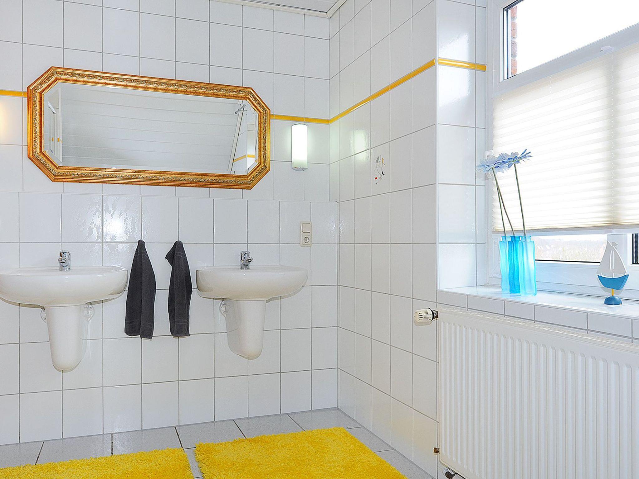 zweites Badezimmer mit Doppel-Waschtisch, Dusche, Badewanne und WC