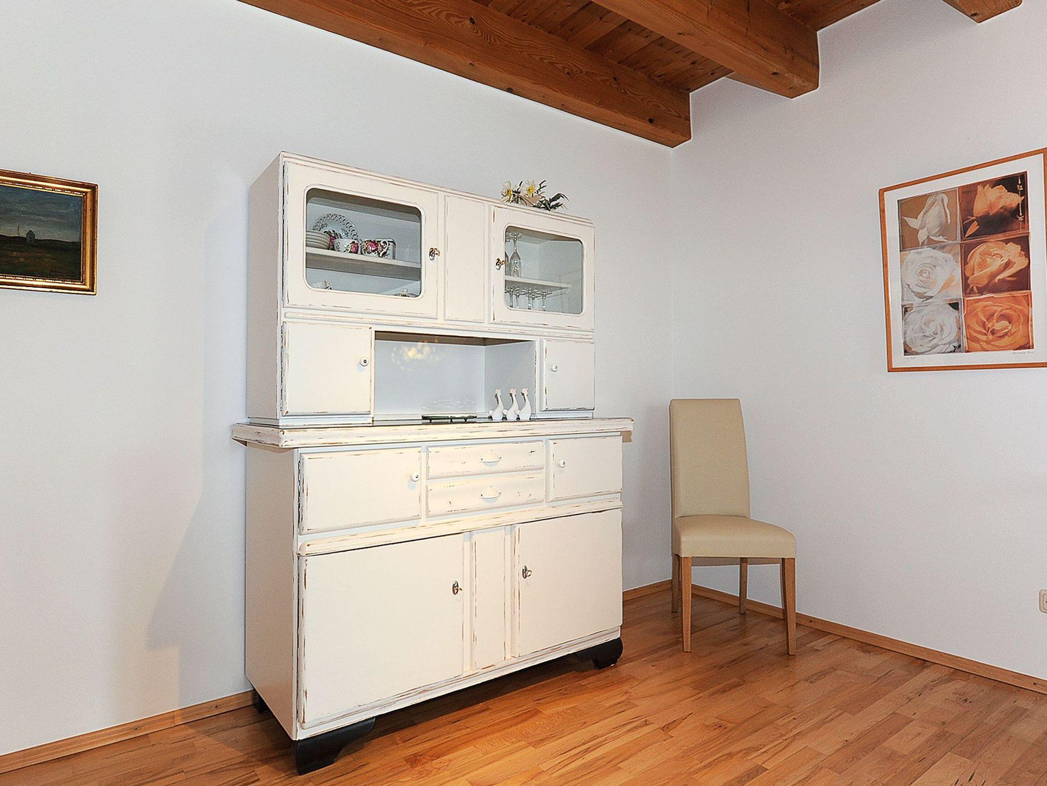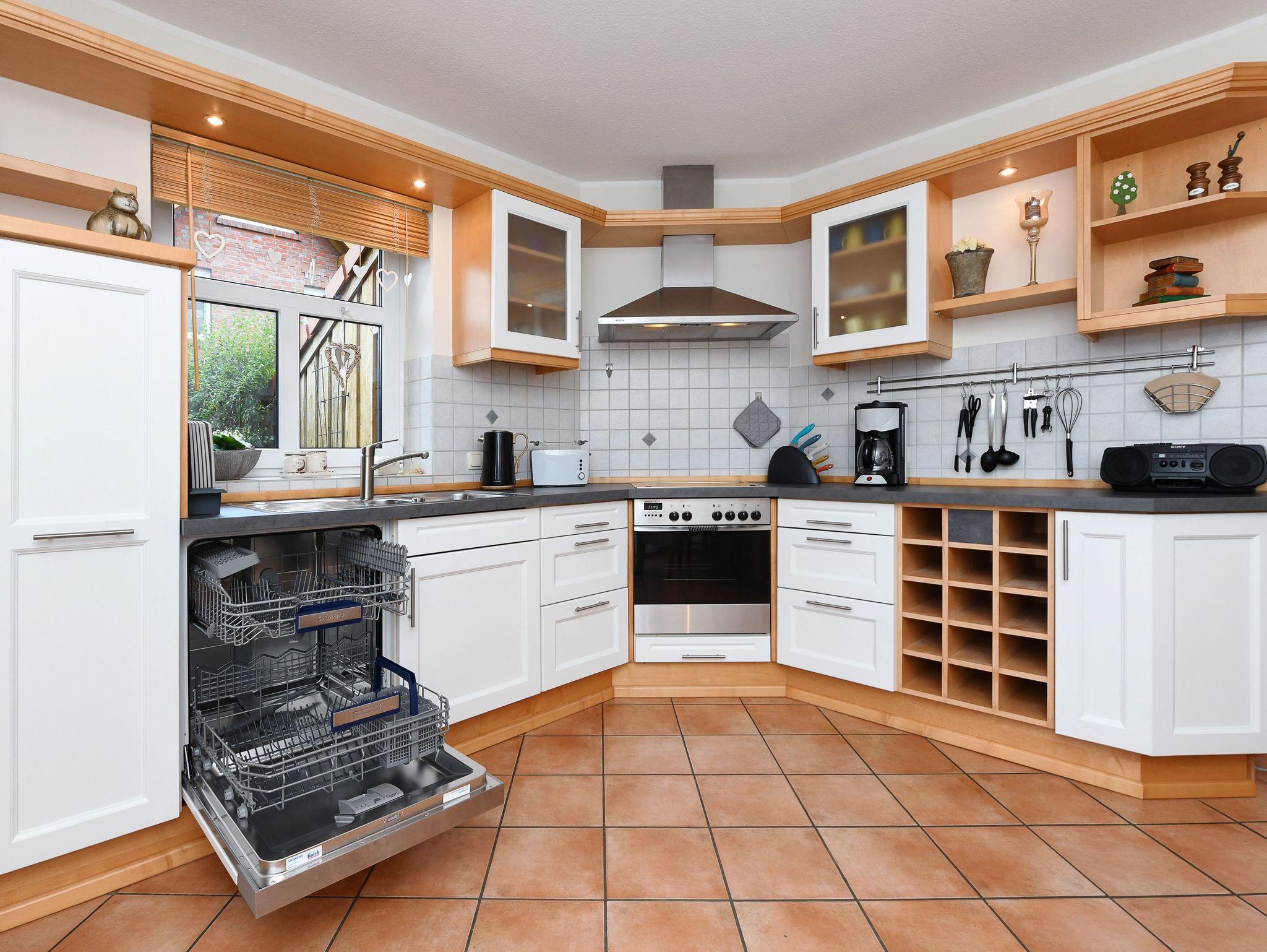Im ganzen Haus liegt Parkett bzw. sind Fliesen oder Laminat gelegt. Der Garten mit der großen möblierten Terrasse ist eingezäunt und damit für Kinder optimal geeignet.