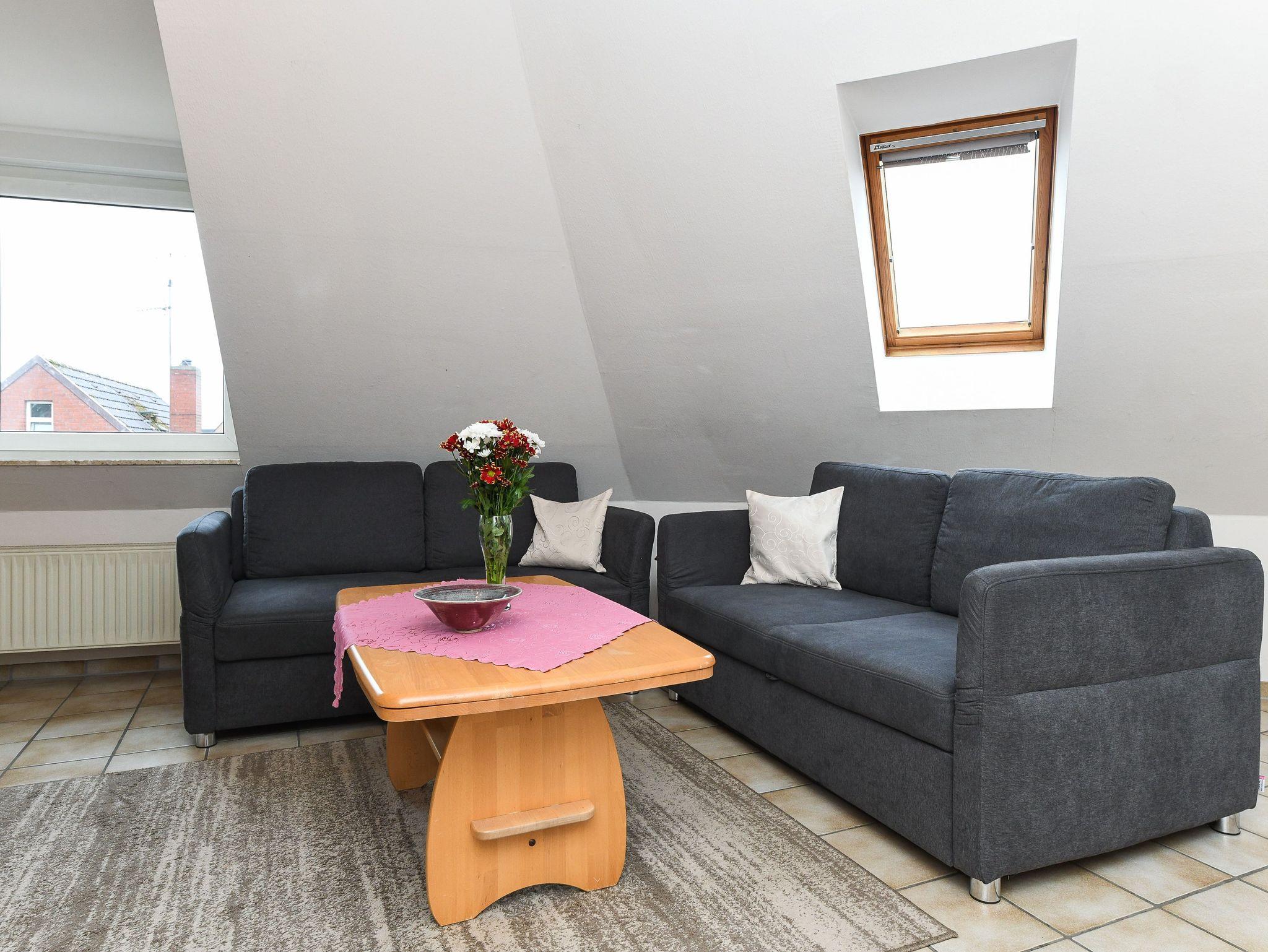 Größe ca. 40 Quadratmeter, mit integrierter Küche, Schlafzimmer, zweites separates Schlafzimmer, Badezimmer mit Dusche, Waschtisch und WC, Obergeschoss, ausschließlich für Nichtraucher, optimal für 2 bis 4 Personen und zusätzlich ein Kleinkind.