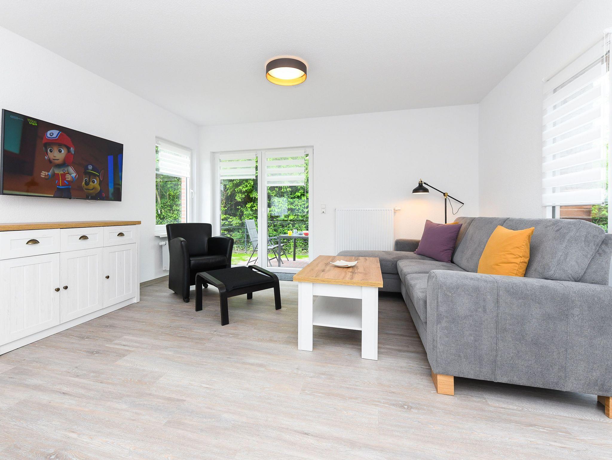 Moderne Erdgeschoss-Ferienwohnung mit Terrasse und WLAN in Esens, ideal für Familien und Radfahrer.