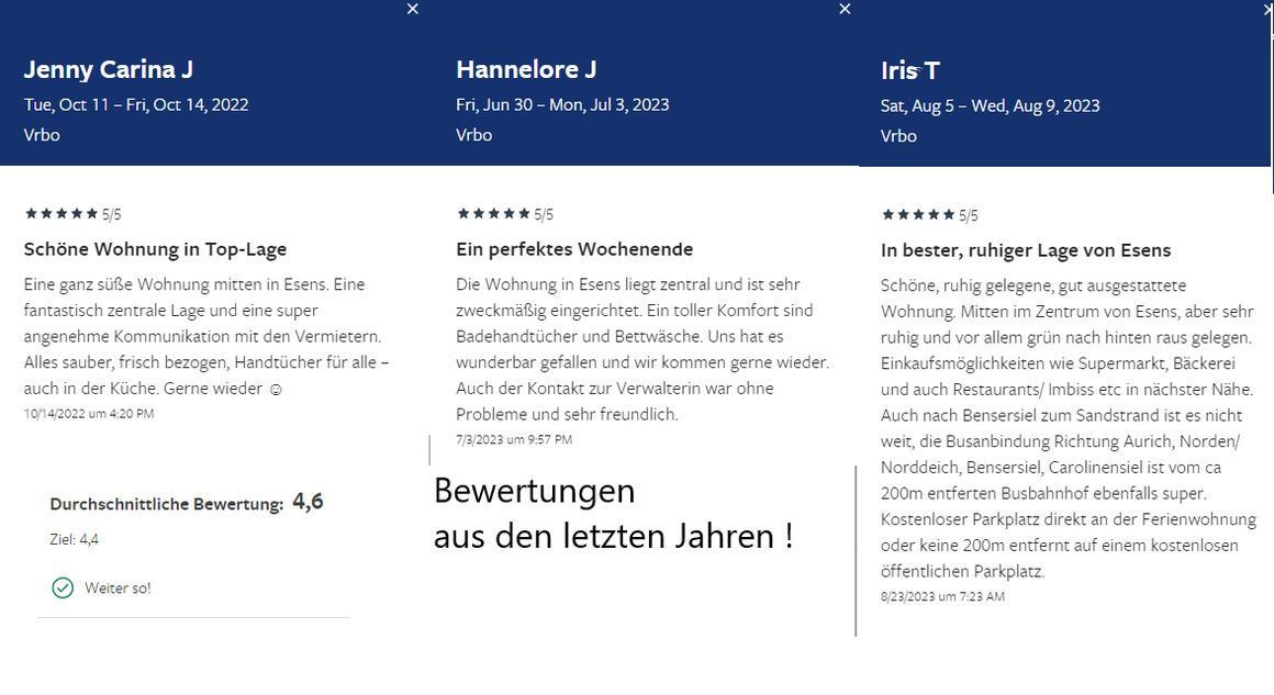 Die geräumige Ferienwohnung liegt inmitten der gemütlichen Esenser Altstadt, zentral und sehr ruhig mit Blick in den Garten. Bis zum Meer sind es 4 km. In unmittelbarer Nähe befinden sich vielzählige Einkaufsmöglichkeiten.