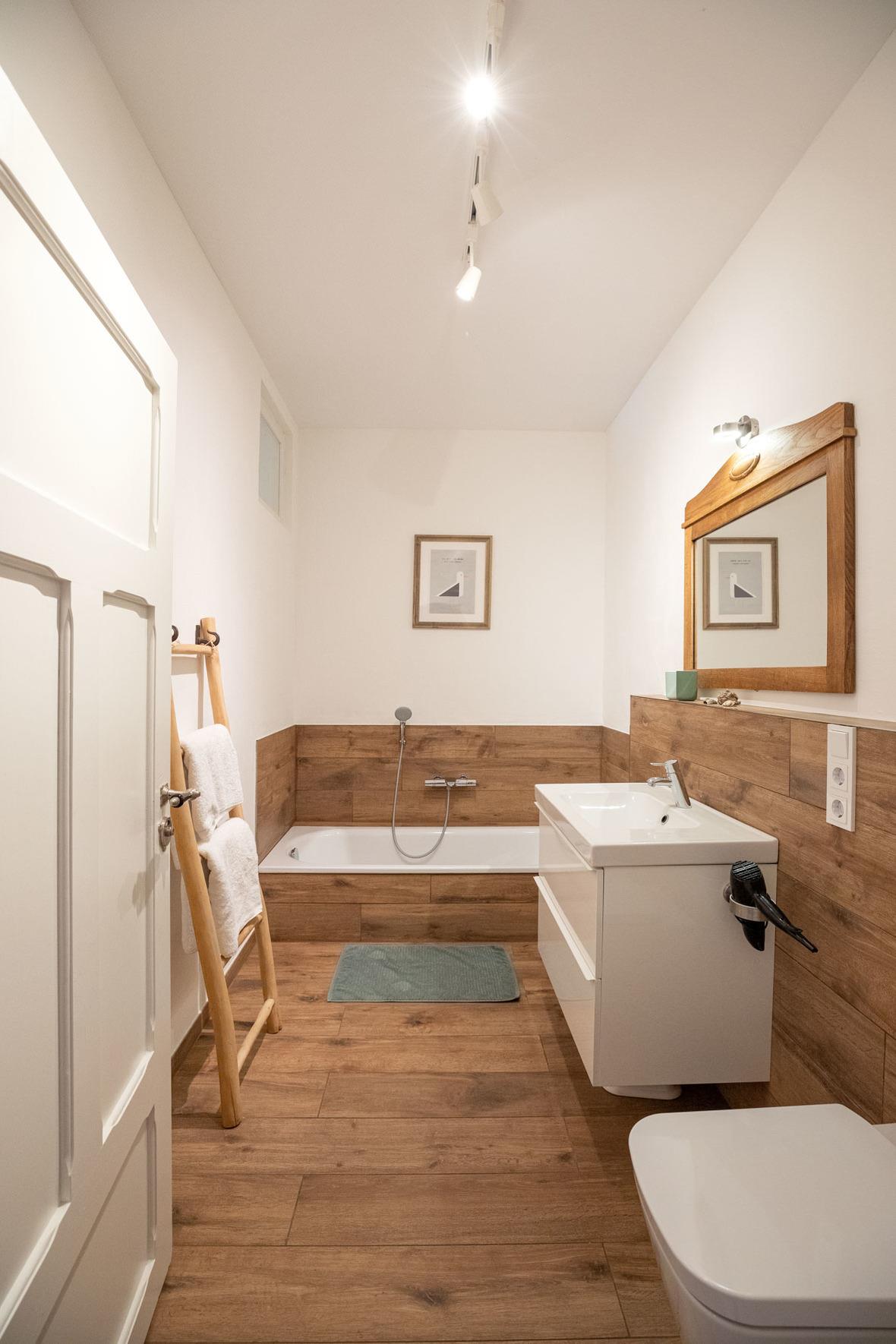 Ihr bevorzugt das entspannte Bad? Oder doch die schnelle Dusche? Beides ist in den zwei neuen, hellen Bädern möglich.