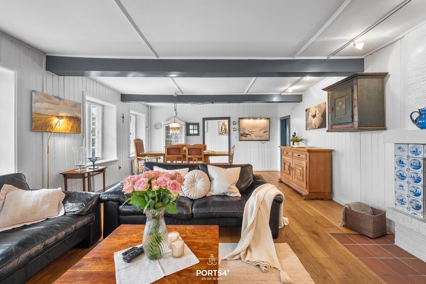 Willkommen im Reetdachhaus Holländerdeich in Fahretoft, Ihrem perfekten Rückzugsort an der malerischen Nordsee. Dieses freistehende historische Ferienhaus mit großem Garten nach Süden bietet Platz für bis zu sieben Gäste und ist ideal für Familien oder Paare, die eine entspannende Auszeit in ländlich-ruhiger Umgebung suchen. Mit einer Gesamtfläche von fünf Zimmern, darunter drei Schlafzimmer, und zwei großzügigen Terrassen ist das Haus komfortabel konzipiert, um all Ihre Bedürfnisse zu erfüllen. Das Innere des Ferienhauses ist geschmackvoll und funktional eingerichtet und ausgestattet. Die Küche ist mit sämtlichen erforderlichen Geräten bestückt, einschließlich einer Spülmaschine, einem Cerankochfeld, einem Elektrobackofen, einer Mikrowelle mit Grill, einem Kühlschrank mit Gefrierfach und weiteren nützlichen Küchenutensilien. Die beiden Esstische in Wohnzimmer und Küche sowie Sofas und Couchtisch laden dazu ein, gesellige Abende zu verbringen, während Sie den Blick durch die Fenster an den alten Bäumen vorbei in die weite Landschaft genießen. Eine komfortable Ausstattung sorgt für einen angenehmen Aufenthalt: Das Wohnzimmer ist mit einer Soundbar und einem Smart-TV ausgestattet, sodass Sie auch in Ihren freien Stunden nicht auf Musik und Unterhaltung nach Ihrem eigenen Geschmack verzichten müssen. Darüber hinaus befindet sich im Wohnbereich ein dekorativer Kamin, der nicht beheizt werden kann, aber für ein stimmungsvolles Ambiente sorgt. Neben dem Wohnzimmer bietet der «Pesel», eines der Schlafzimmer, einen gemütlichen Ort mit Sofabett, Sessel und Tisch zum stillen Rückzug zum Lesen oder Arbeiten. Freuen Sie sich auf zwei Badezimmer, eines davon mit einer Badewanne, während das andere eine bodengleiche Dusche bietet. Praktische Annehmlichkeiten wie eine Waschmaschine, ein Trockner und Bügelmöglichkeiten sind ebenfalls vorhanden. Für die kleinen Gäste stehen ein Kinderhochstuhl, im Obergeschoss eine große Spielfläche sowie ausreichend Platz im Garten zur Verfügung, wo sie ungestört spielen können. Die zwei Terrassen sind nach Süden und nach Westen gelegen, sodass Sie sowohl Mittags- als auch Abendsonne genießen können. Vielfältige Sitz- und Liegemöglichkeiten laden zum Ausspannen oder auch zur Beobachtung der zahlreichen und vielfältigen Zugvögel ein. Das Ferienhaus ist ein Nichtraucherhaus und bietet Ihnen zudem Parkmöglichkeiten, um Ihren Aufenthalt so angenehm wie möglich zu gestalten. Die Lage des Hauses ist besonders attraktiv: Es befindet sich ca. 300 Meter von einem See entfernt und bietet somit eine direkte Anbindung an unvergessliche Naturschönheiten. Für romantische Spaziergänge oder sportliche Aktivitäten wie Radfahren und Wandern bieten sich die Umgebung und die hervorragenden Landschaftsblicke an. Die Nordseeküste mit Blick auf das Wattenmeer und die Halligen ist nicht weit entfernt. Sie können die Seele baumeln lassen, während Sie die Aussicht auf die umliegende Natur bewundern oder einmal eine Wattwanderung unternehmen. Ob Sie Abenteuer in der Natur suchen oder einfach nur entspannen möchten, das Reetachhaus Holländerdeich ist die ideale Wahl für Ihren nächsten Urlaub. Sichern Sie sich Ihren Aufenthalt und erleben Sie unvergessliche Tage in dieser bezaubernden Region.