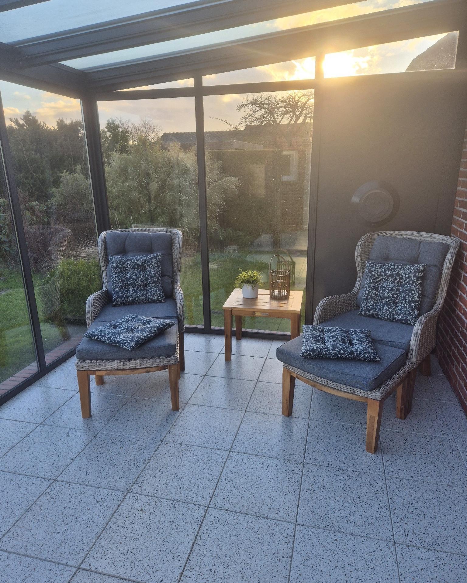 Das Haus hat einen Wintergarten und Durchgang zum wunderschönen Garten mit Grillecke, der viel Platz zum erholen und entspannen bietet. Für Ihren PKW steht ein Carport zur Verfügung.