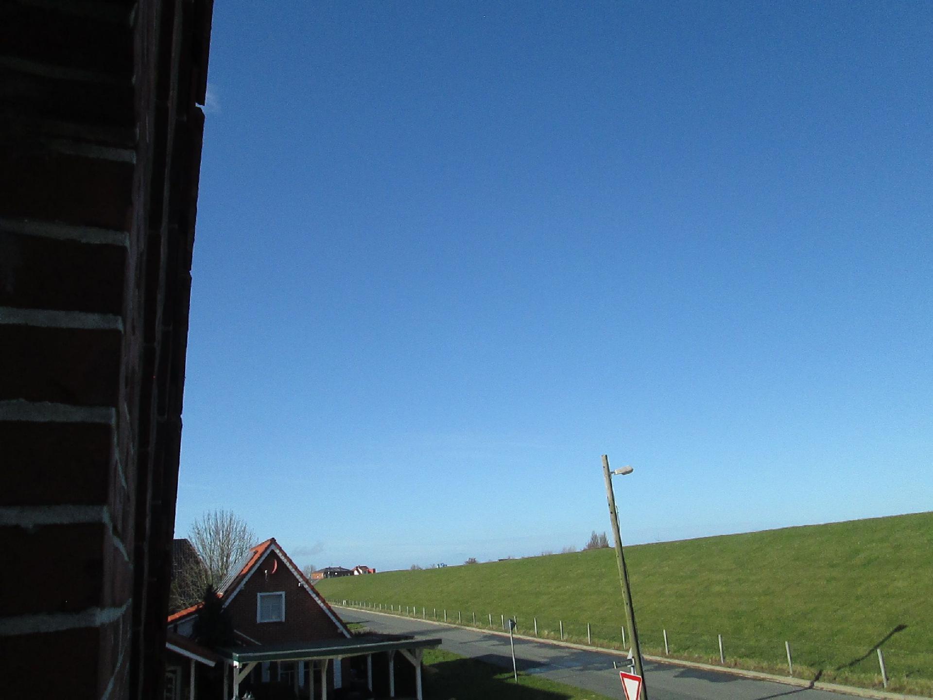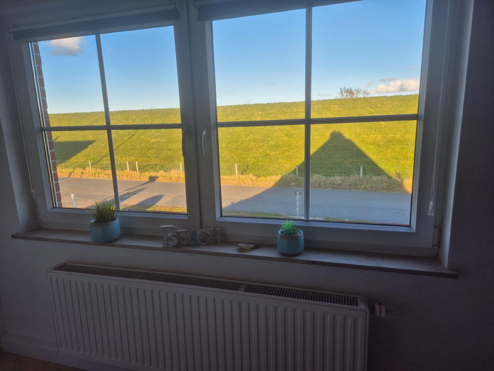 Gemütliches Ferienhaus Deichkieker mit Blick auf den Deich nahe Fedderwardersiel und dem Wattenmeer.