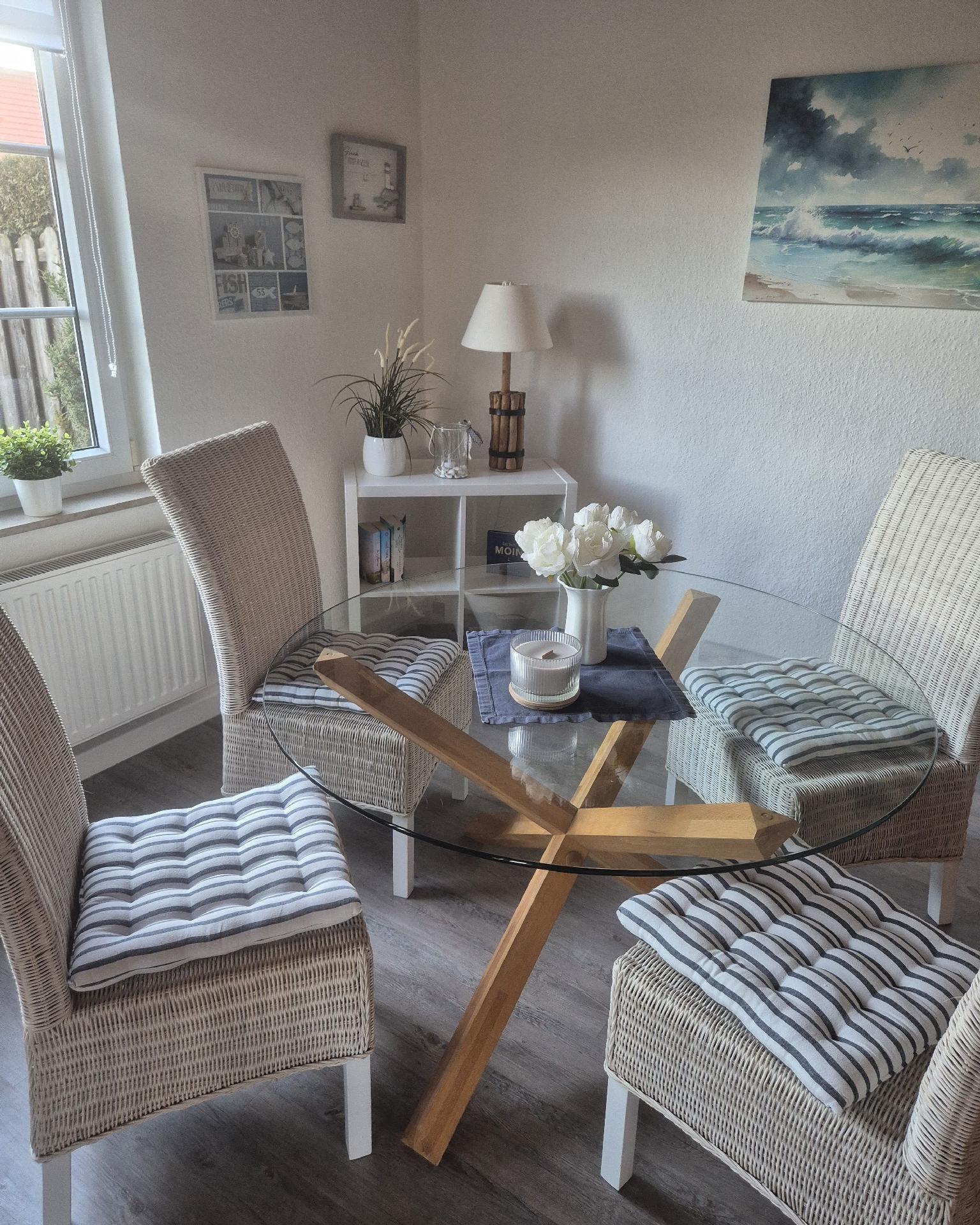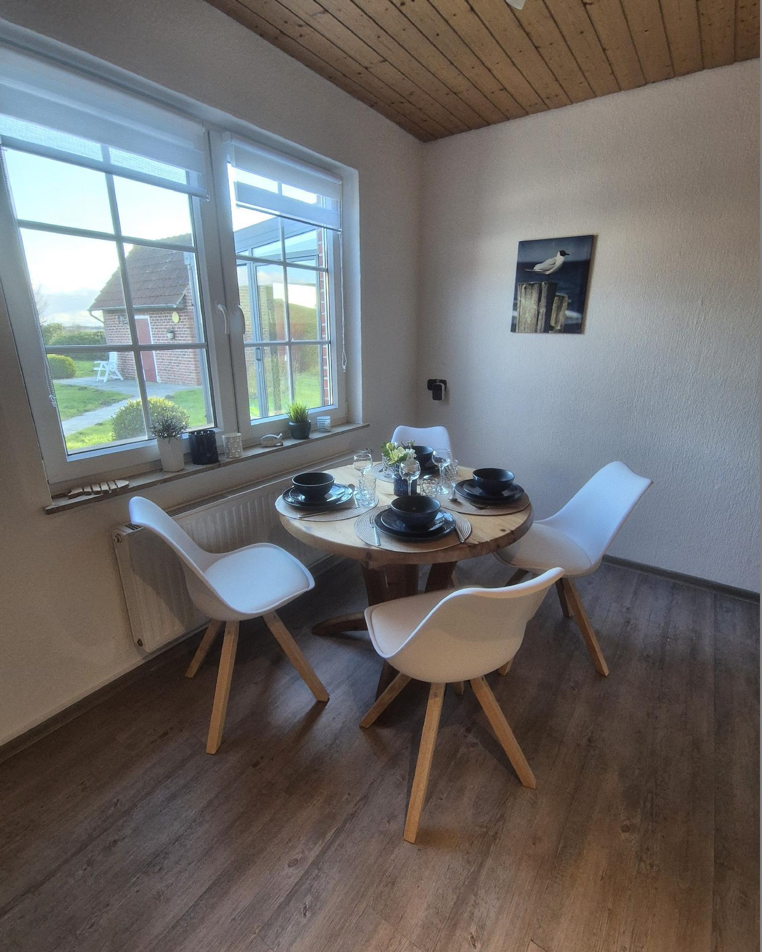Das Haus Deichkieker bietet Ihnen ein gemütliches Wohn-Eßzimmer. Die Einbauküche ist komplett ausgestattet (Wasserkocher, Mikrowelle, Kaffeemaschine, Herd mit Backofen, Geschirrspüler, Gefrierschrank und vieles mehr). Wir bieten Ihnen ein Schlafzimmer für zwei Erwachsene und ein Schlafzimmer für zwei Kinder . Außerdem ein Badezimmer mit Dusche und WC und ein zusätzliches Gäste-WC. Für kleine Gäste erhalten Sie auf Wunsch ein Reisebett und einen Hochstuhl.