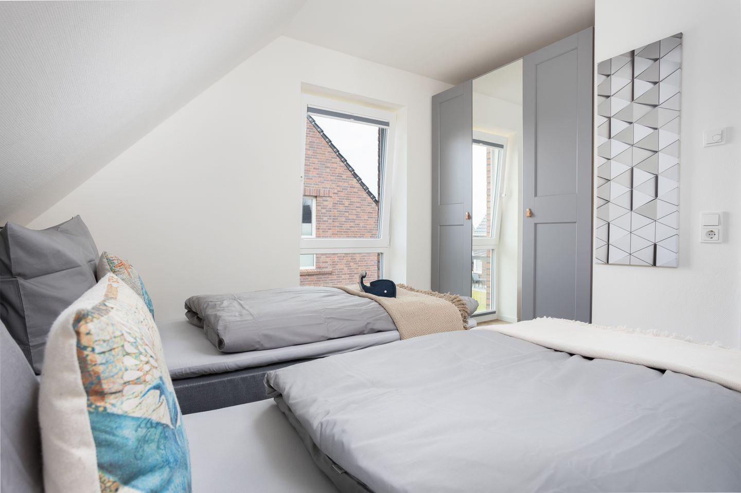 Drei Schlafzimmer mit hochwertigen Boxspringbetten garantieren dir erholsame Nächte. Im Erdgeschoss befindet sich ein Schlafzimmer mit Doppelbett und barrierearmem Zugang – ideal für Senioren oder Gäste mit eingeschränkter Mobilität. Im Obergeschoss erwartet dich ein weiteres Doppelzimmer sowie ein flexibles Zimmer mit zwei Einzelbetten, die auch zusammengestellt werden können.