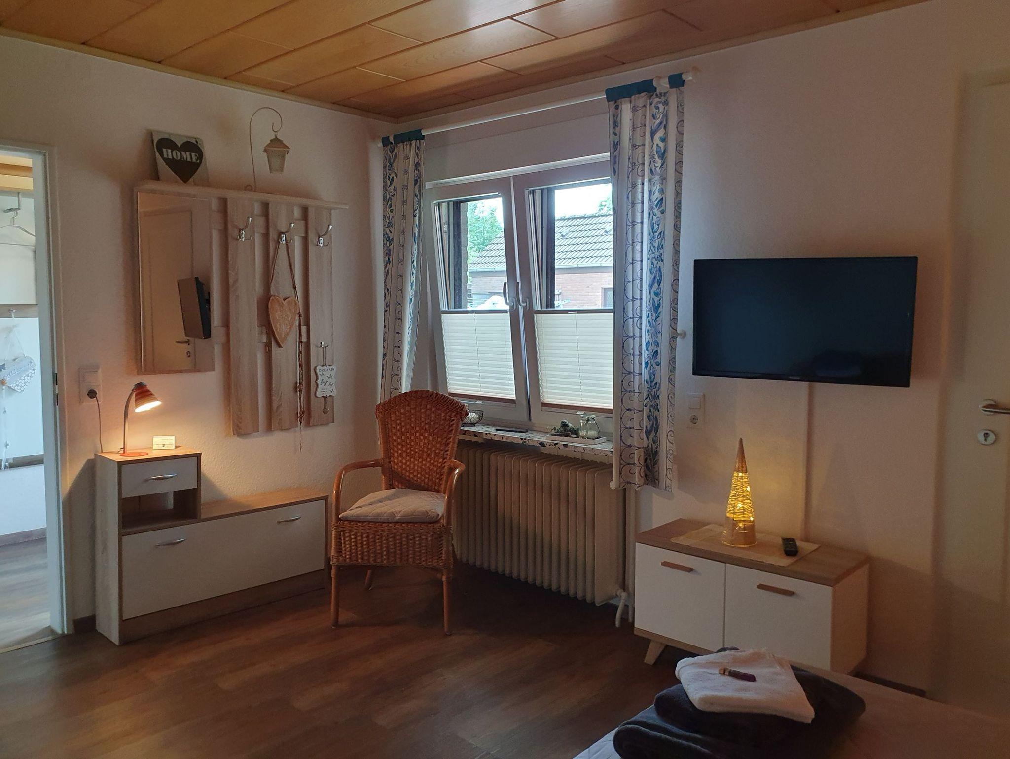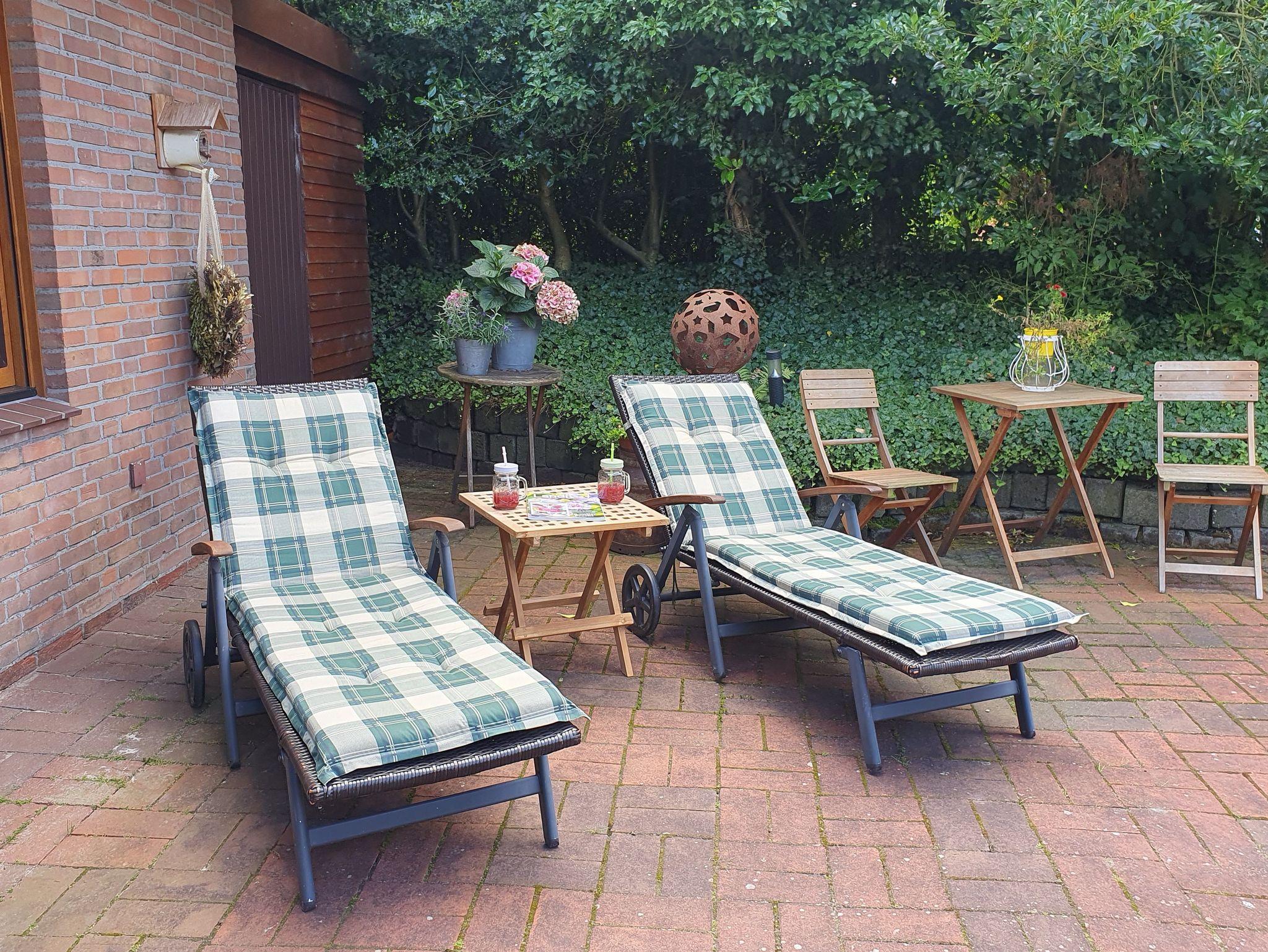 Erleben Sie ostfriesische Gemütlichkeit in der liebevoll eingerichteten Ferienwohnung Picidae mit Terrasse und WLAN.