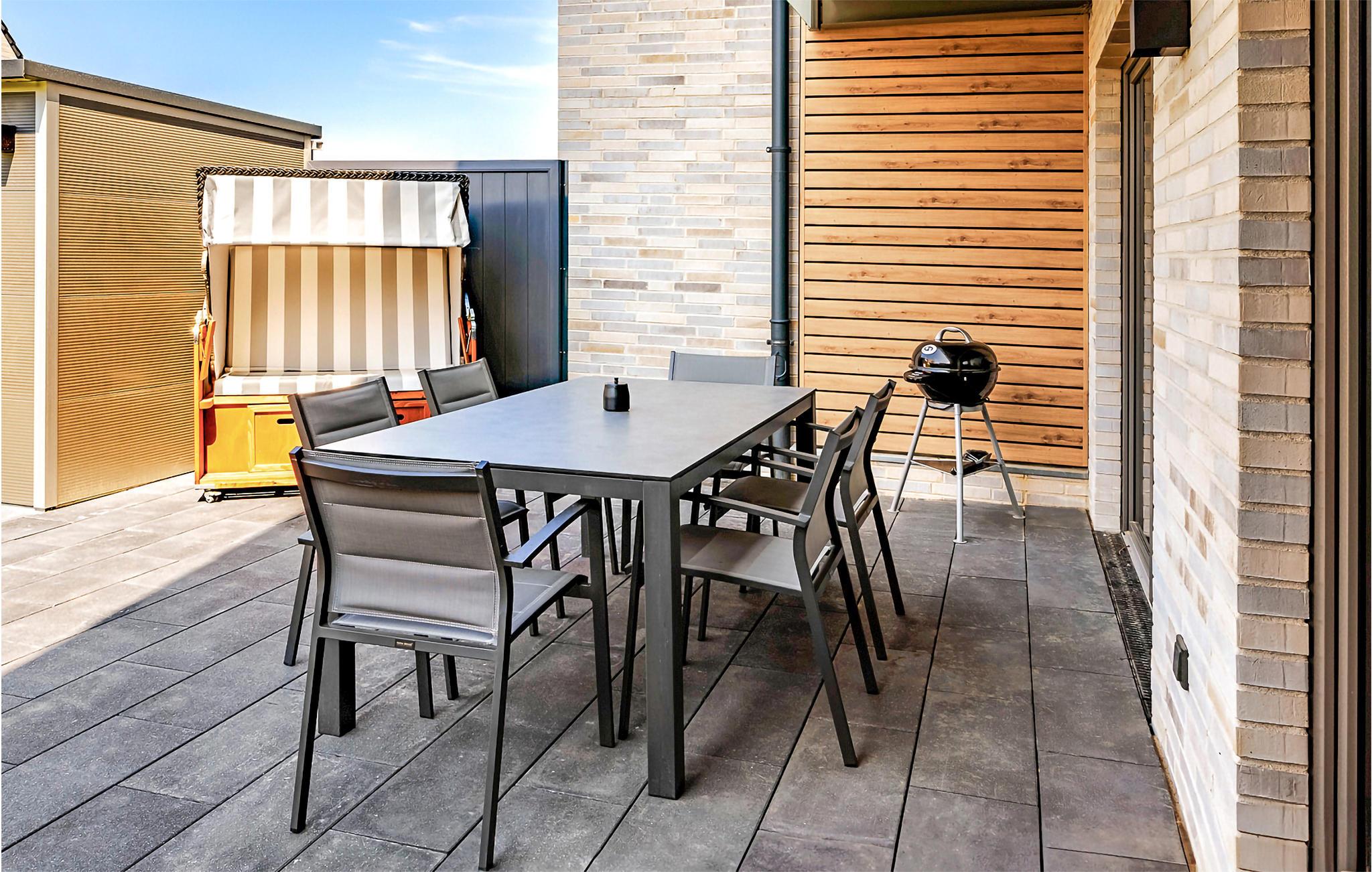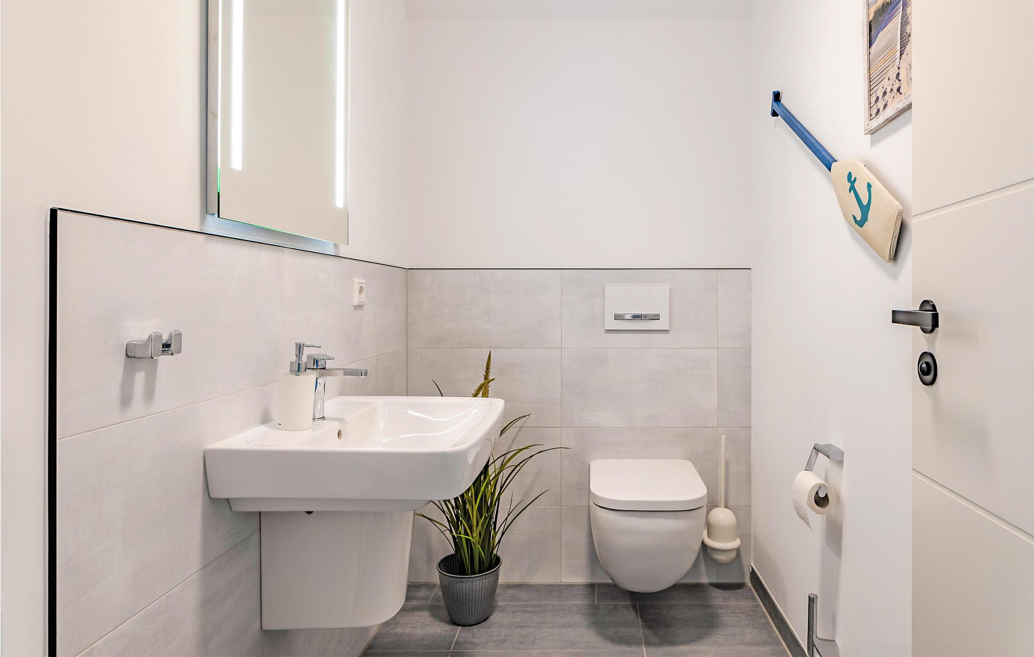 In diesem schönen Ferienhaus erwartet Sie hoher Komfort im landestypischen Stil. Dünengräser und Friesenwälle runden die moderne Architektur ab. Durch die massive Bauweise und die Nutzung pflegeleichter Materialien verspricht dieses Ferienhaus hohe Wohnqualität mit einem hohen energetischen Standard. Die hochwertig ausgestatteten Zimmer bieten reichlich Platz, komfortable Einrichtungen wie Fußboden-heizung und Kaminofen für gemütliche Abende. Die Einrichtung lässt somit keine Wünsche offen. Der Zugang zum Ferienhaus, sowie die gesamten Räumlichkeiten im Erdgeschoss des Ferienhauses sind ohne Stufen zu erreichen. Ebenfalls ist das Bad im Erdgeschoss ohne Barrieren zu nutzen.