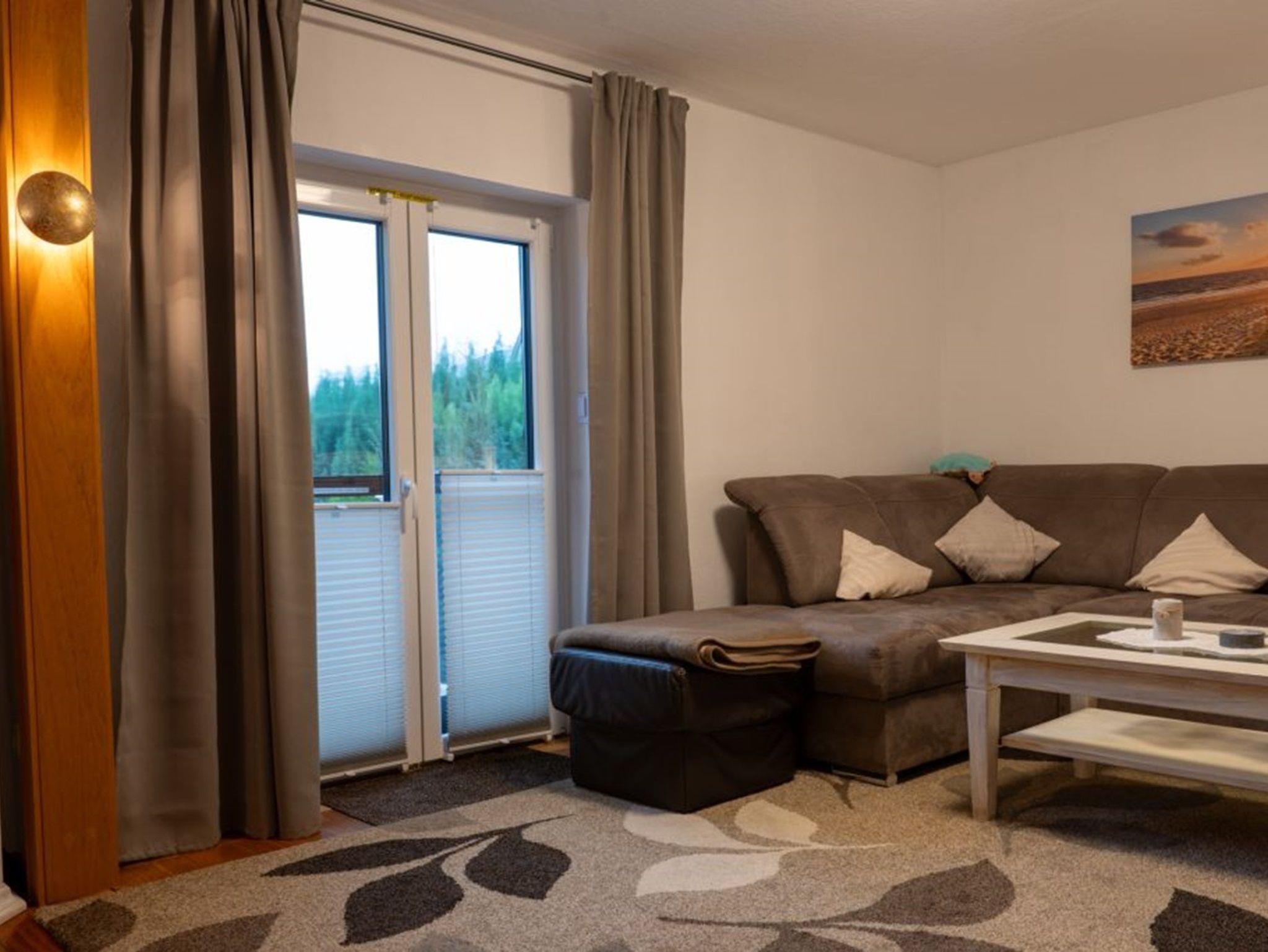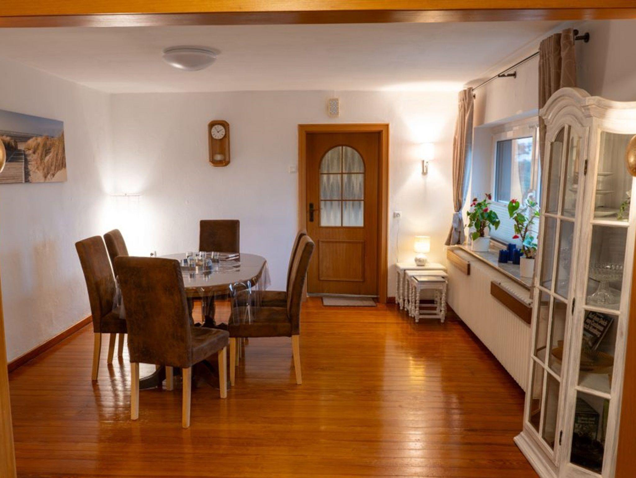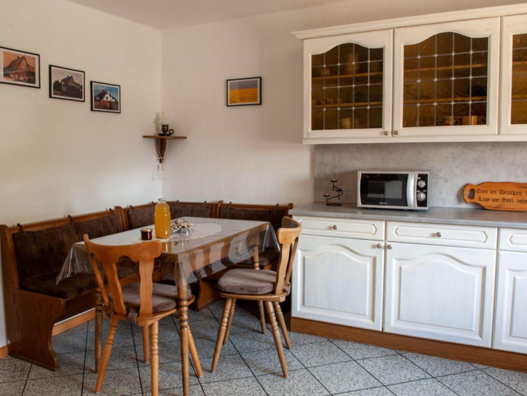 Im Wohnraum stehen ein modernes Ecksofa, ein Fernseher (mit Sat-Empfang) sowie ein Esstisch mit 6 Stühlen zur Verfügung. Die große Küche ist mit einer Eckbank, einem Tisch mit 4 Stühlen, einem Geschirrspüler, einem Kühlschrank mit Gefrierfach sowie einer Mikrowelle ausgestattet. Selbstverständlich kann auch WLAN (Glasfaser) genutzt werden. Bitte haben Sie Verständnis, dass das Rauchen und Haltung von Tieren in der Wohnung nicht gestattet sind.
