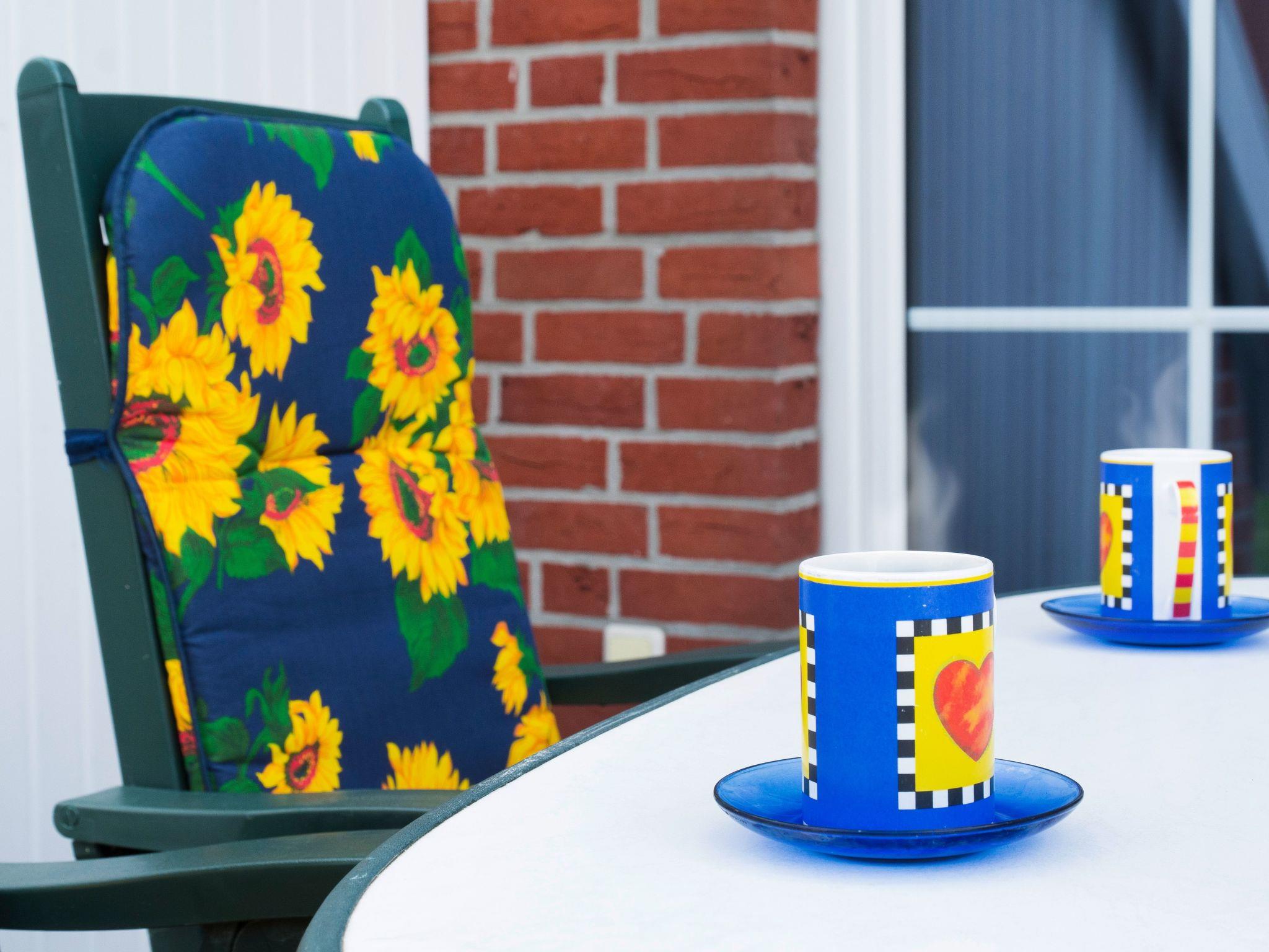 Unmittelbar vor ihrem Ferienhaus steht Ihnen ein Parkplatz zur Verfügung. Genießen sie auf der möblierten Terrasse die Sonne und schalten sie vom Alltag ab. Ein Sonnenschirm bietet auch bei sonnigen Tagen Schattenplätze an. Lassen Sie erlebnisreiche Tage gemütlich mit dem Holzkohlegrill ausklingen.