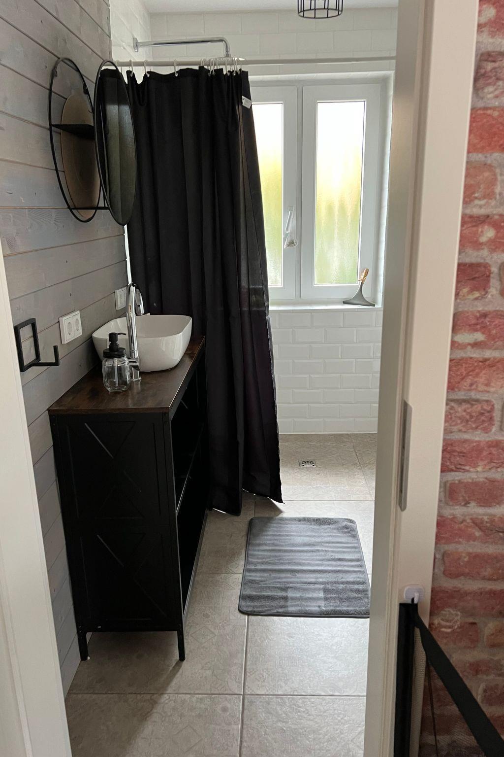 Stilvolles Bad mit Dusche, Badewanne und WC