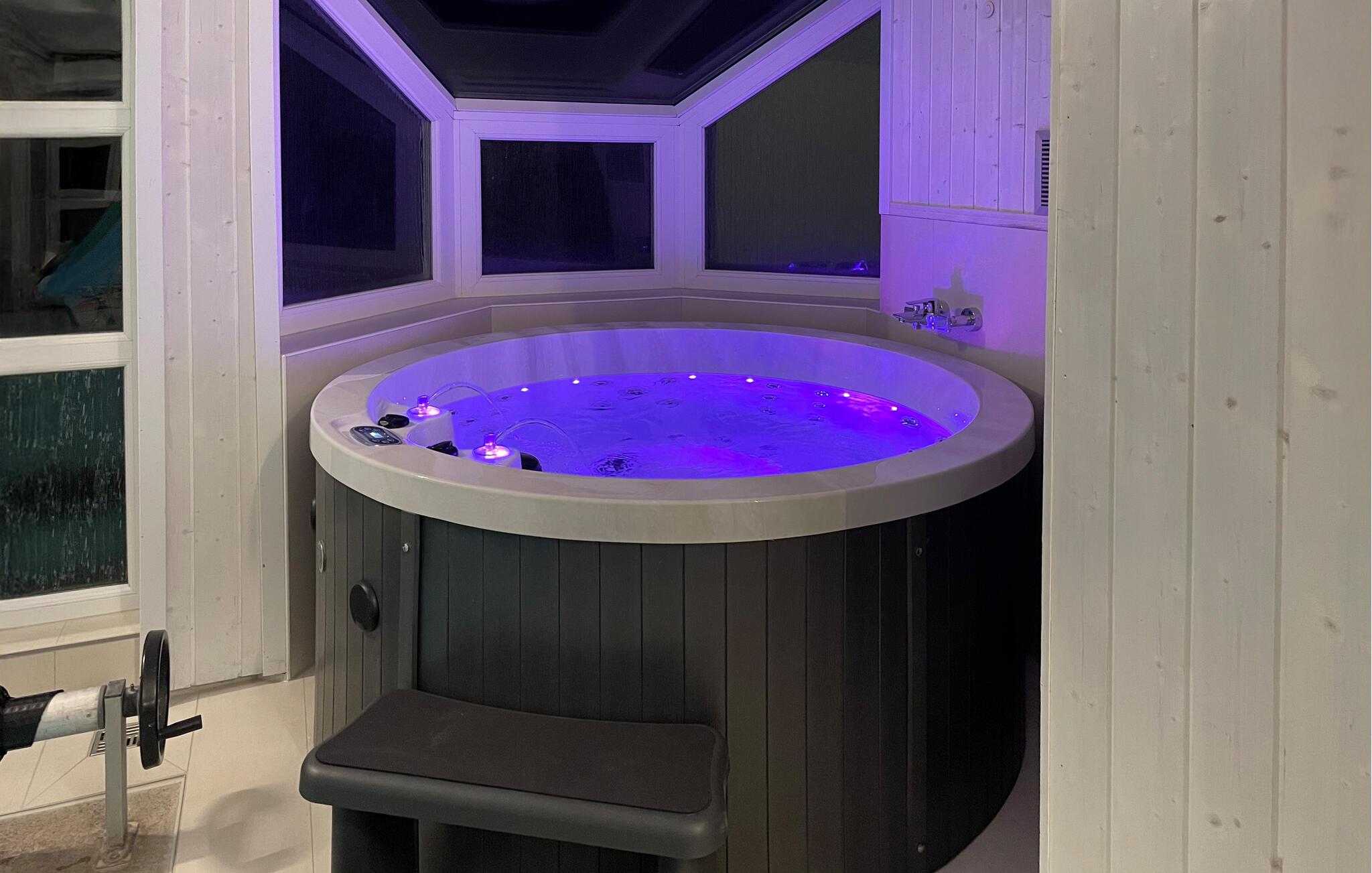 Im Poolbereich ist zudem ein separater Whirlpool mit Massagedüsen, der Platz für bis zu 5 Personen bietet.