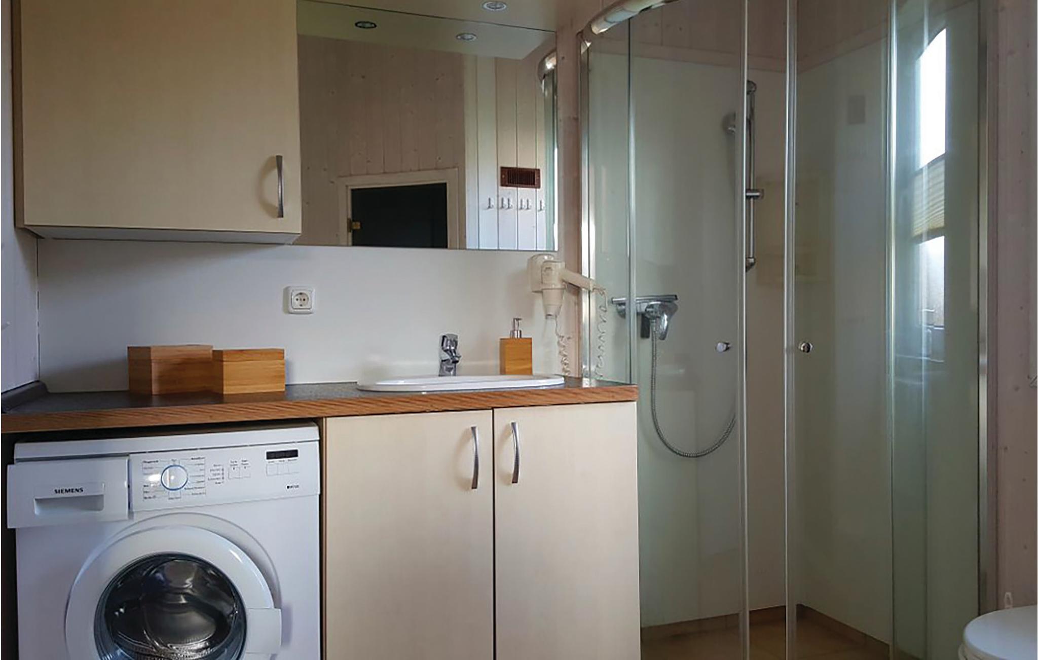 Gerade für die kältere Jahreszeit ist das Haus ideal, denn im Badezimmer erwartet Sie ihre ganz private Sauna, um sich nach einem Tag an der frischen Luft wieder richtig aufzuwärmen. Anschließend können Sie es sich auf dem Sofa gemütlich machen und den Feuerschein des Kamins (Bioethanol) im Wohnzimmer genießen.