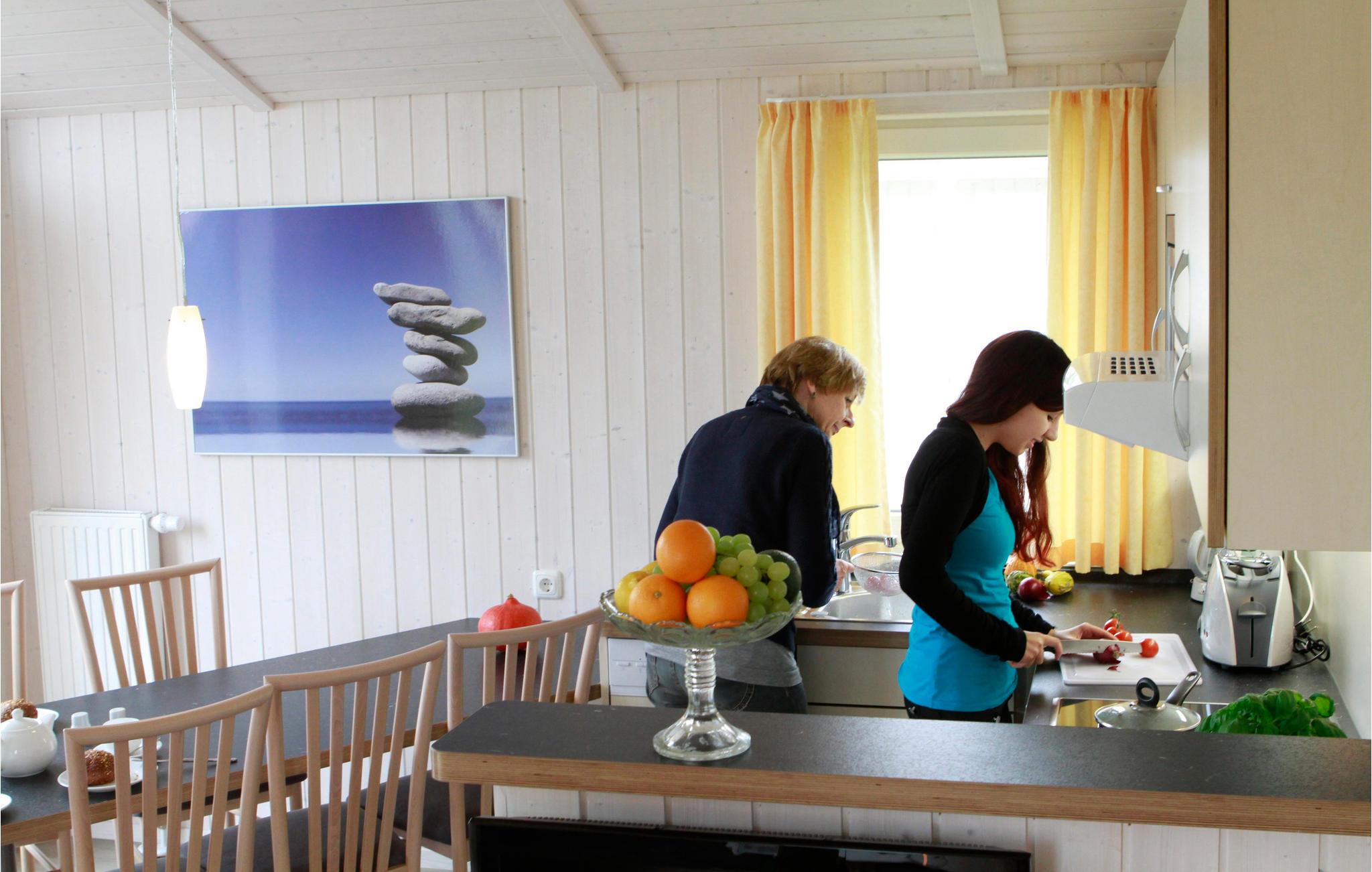 Durch ein Schlafsofa im Wohnbereich können bis zu sechs Personen in diesem Haus ihren Urlaub verbringen.