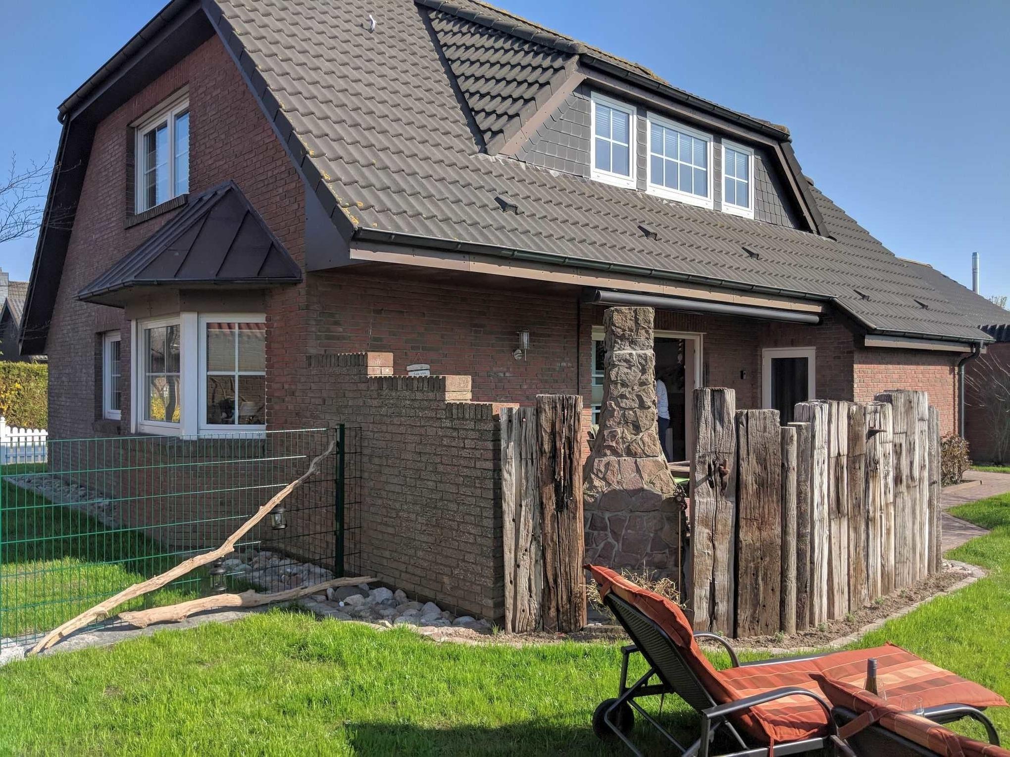 Modernes Ferienhaus Nordseewind mit Garten und Strandkorb nahe der Nordsee in Friedrichskoog.