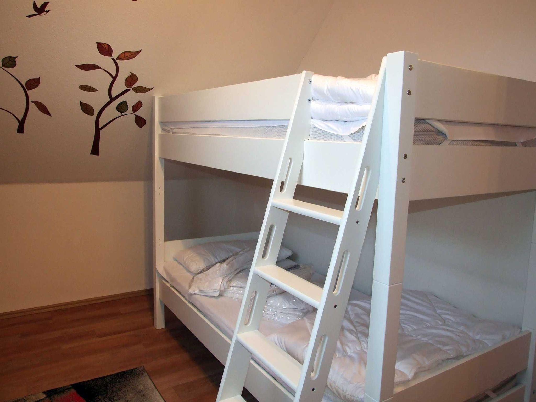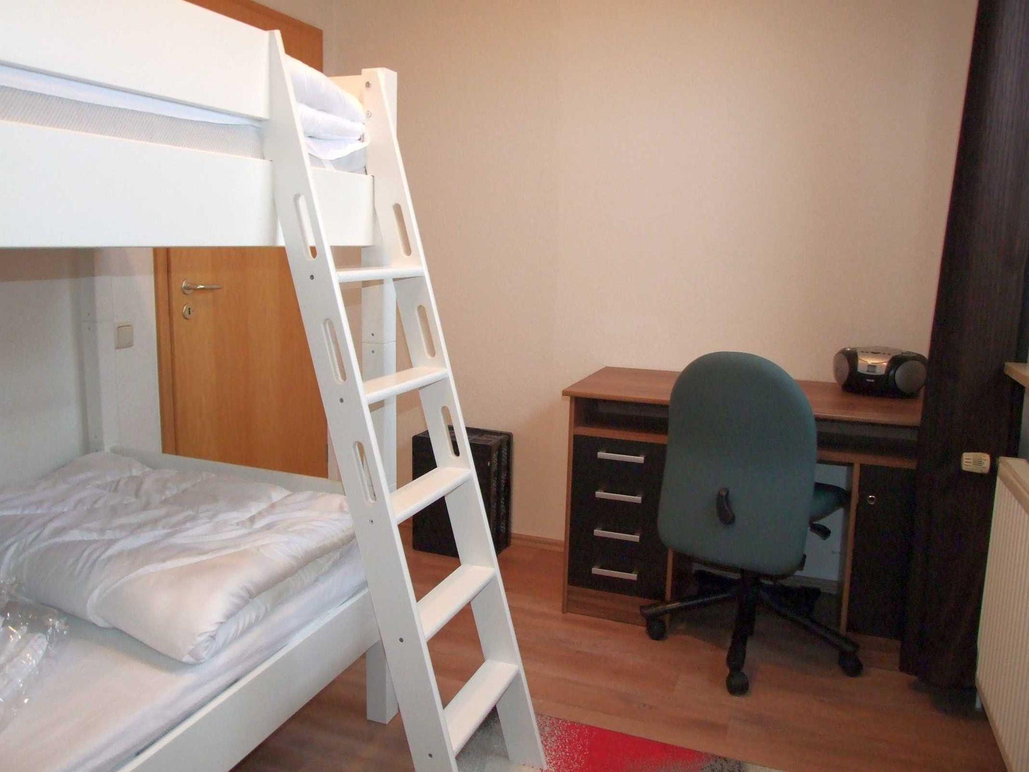 • ein kleineres Schlafzimmer mit Etagenbett 0,90 x 2,00 m, mit Schreibtisch