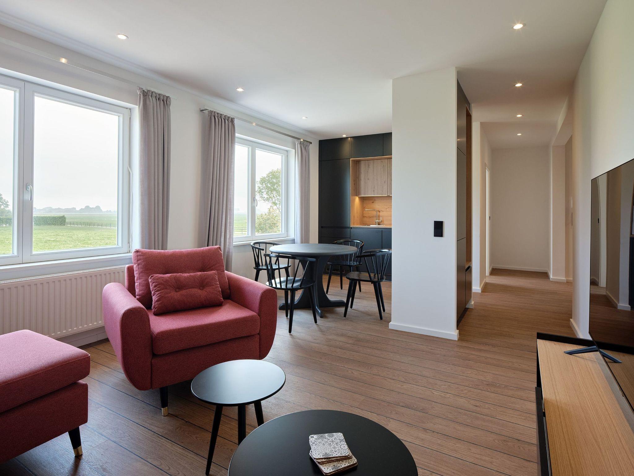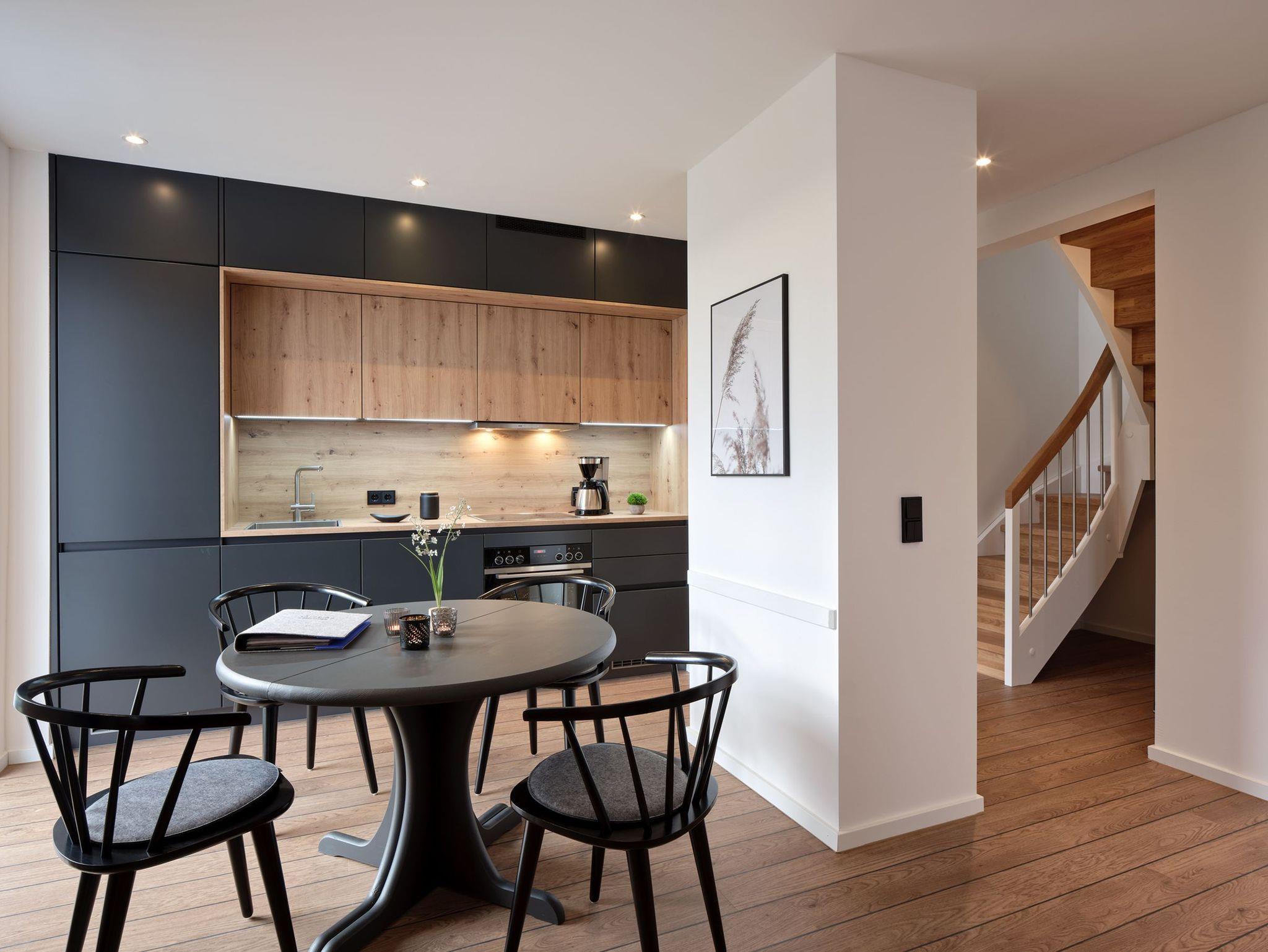 Der Wohn-/Essbereich mit offener Küche ist der Mittelpunkt der Apartments und bietet Platz für die ganze Familie. Die geräumigen Einheiten sind geschmackvoll und komfortabel ausgestattet, eine hochwertige Möblierung sowie der großzügig geschnittene und helle Wohnraum sorgen für echte Urlaubsstimmung.