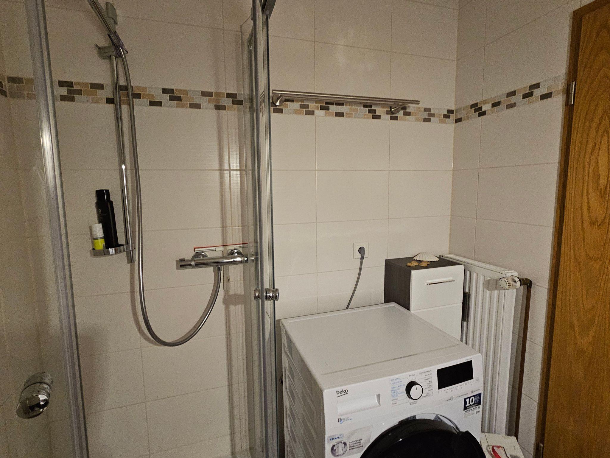 modernes Bad mit Waschtrockner stehen für Sie bereit.