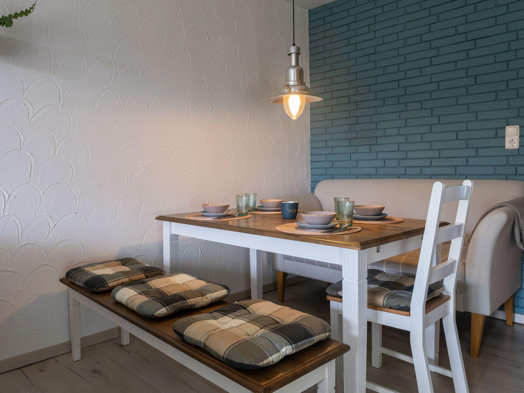 Ferienwohnung Fischschuppen in Friedrichskoog bietet Kamin, eingezäunte Terrasse und hundefreundliche Ausstattung.