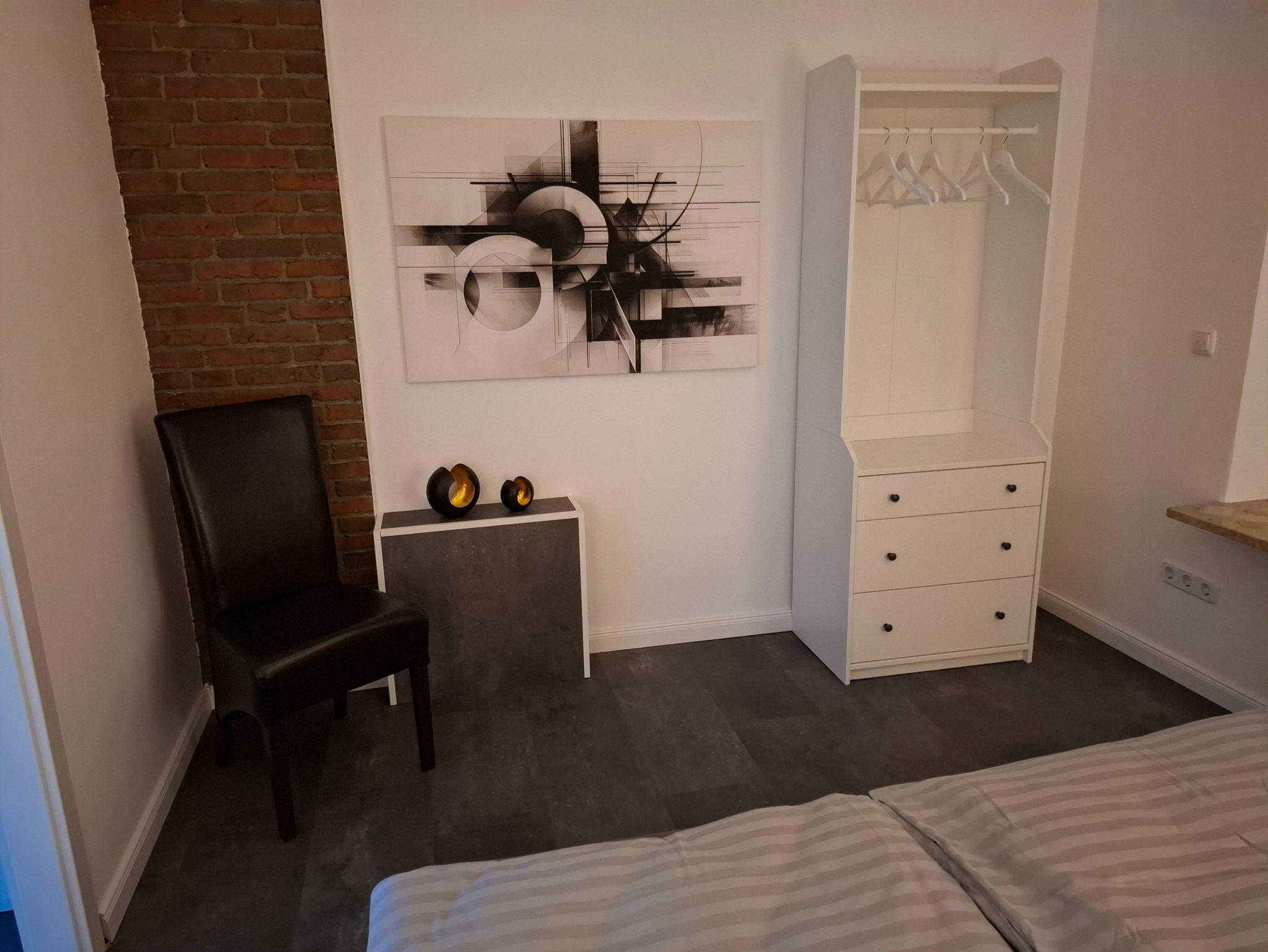 Kleine Auszeit (100 qm, OG) ebenfalls für bis zu 5 Personen, modern eingerichtet und mit gemütlichem Kamin.