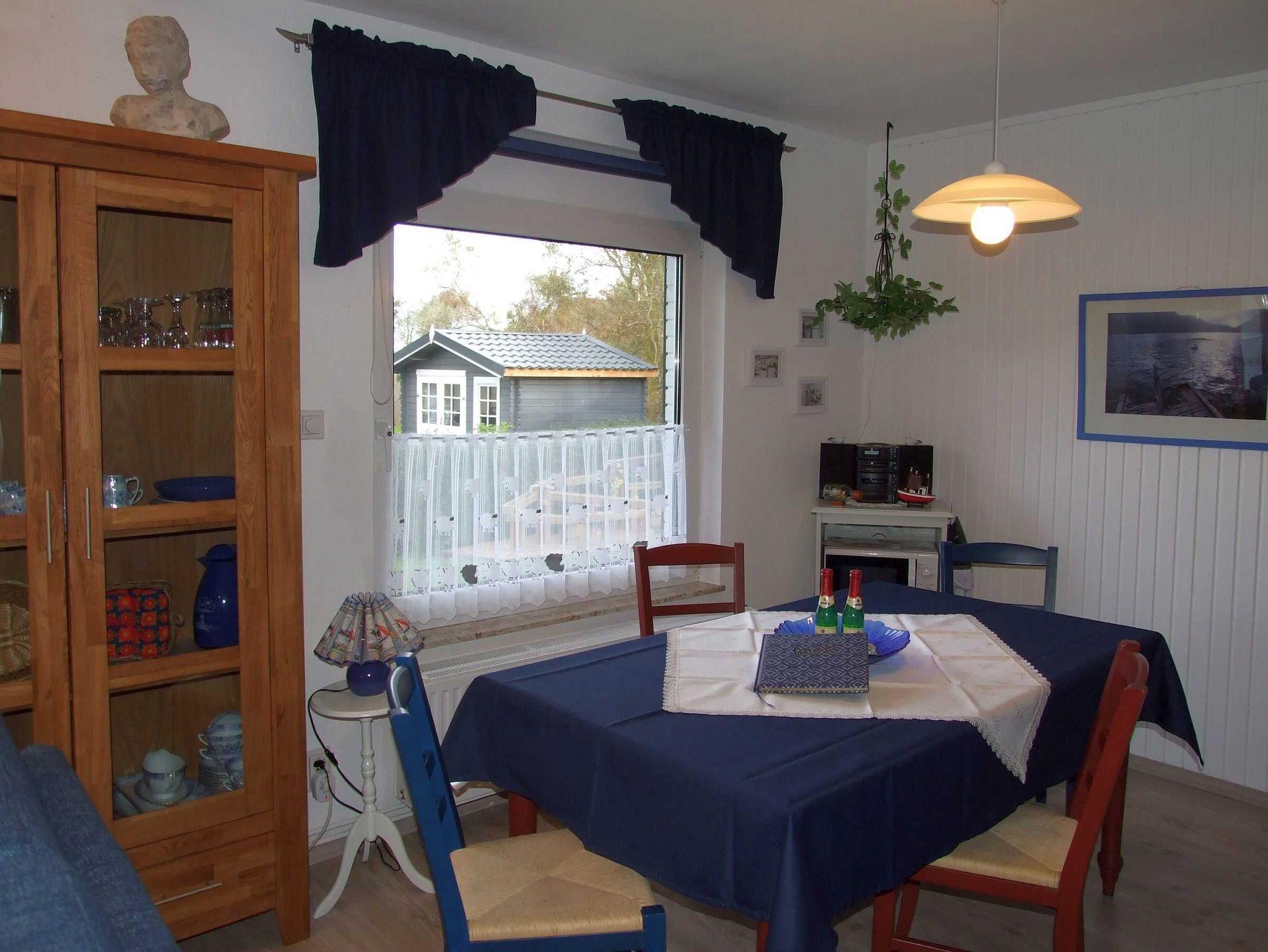 Maritim eingerichtetes Ferienhaus zur Alleinnutzung für bis zu 4 Personen in ruhiger Lage. Eingefriedetes Grundstück mit PKW-Stellplatz. Kombi. Wohn-/Esszimmer und überdachter Terrasse. Schlafzimmer mit Doppelbett und ein Schlafzimmer mit 2 Einzelbetten. Kompl. eingerichtete Küche. Alles ist ebenerdig und mit einem großen, ruhigen Garten.