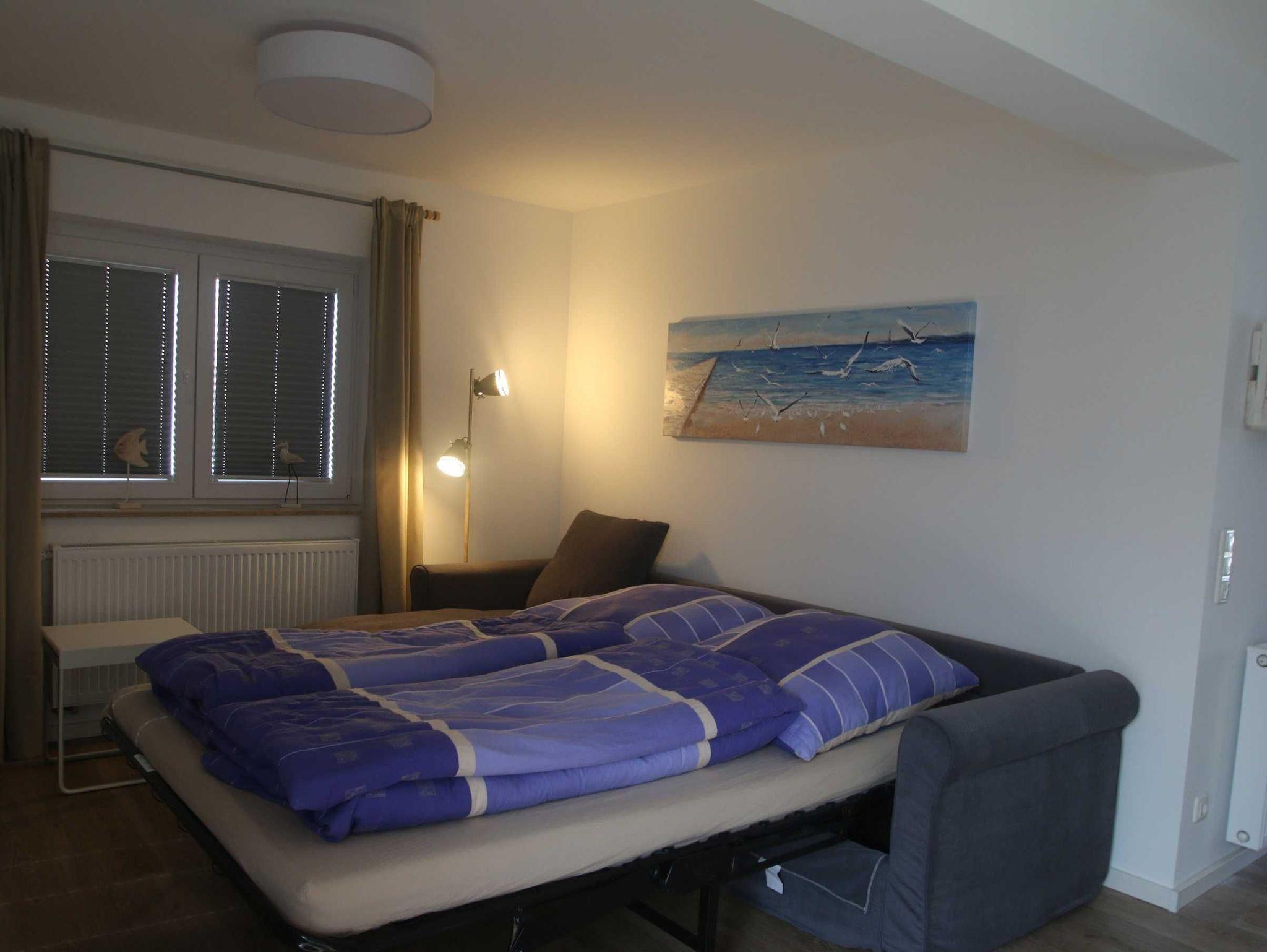 • Großzügiger, offener Wohn- Essbereich mit Bettsofa (weitere Schlafmöglichkeit für 2 Personen) und SAT-TV Schlafraum mit Doppelbett, Kleiderschrank und SAT-TV