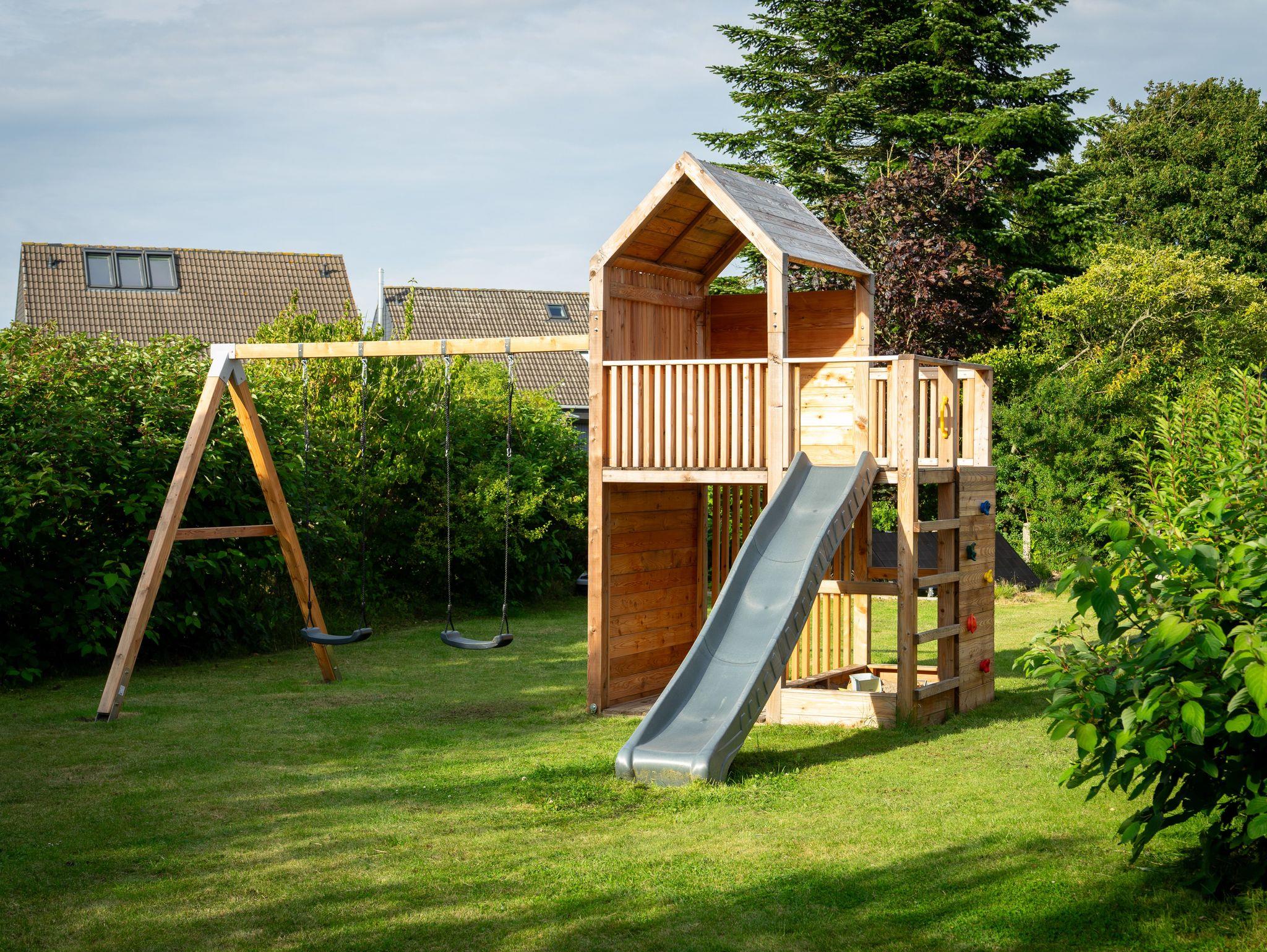 Großzügiges Ferienhaus mit Kaminofen, geschützter Süd-West-Terrasse und 2 Schlafzimmern. Großes eingewachsenes Grundstück in ruhiger Sackgassenlage mit viel Platz ? ob zum Sonnen und Entspannen oder Toben und Fußballspielen. Familiengerechte Ausstattung mit Kinderstühlen, Tritthockern und Treppengittern. Spielturm mit Rutsche, Schaukel und Sandkiste sorgt für Spielspaß im eigenen Garten.