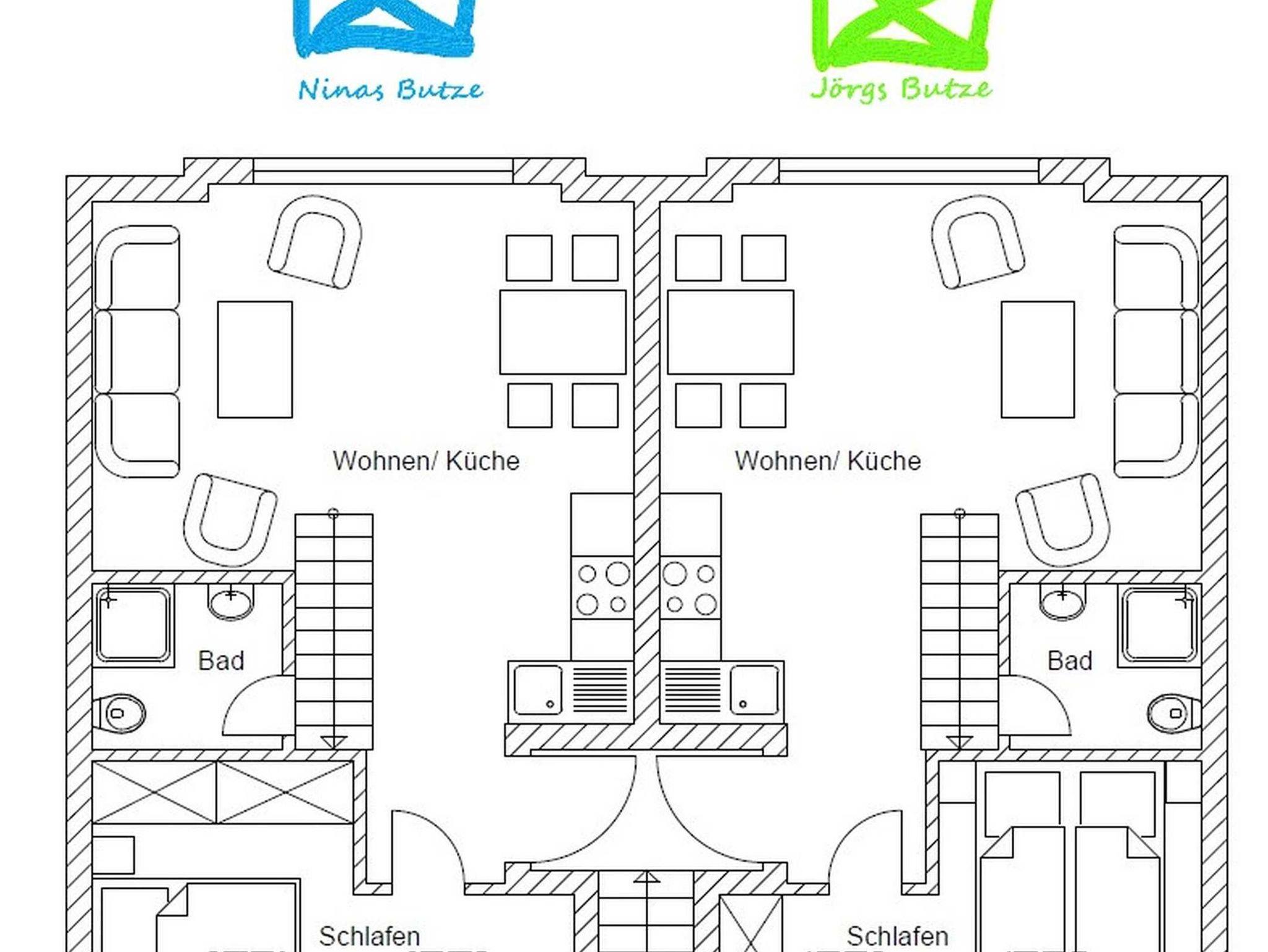 Als Highlight sprechen wir auch gerne Großfamilien oder ein Wochenende mit Freunden an. Man hat die Möglichkeit Jörgs und Ninas Butze gleichzeitig zu buchen. Somit erhöht sich die Bettenkapazität auf max. 8 Personen. Beide Butzen befinden sich in einem Hausflur gegenüberliegend. Über den Haupteingang hat man nur Zutritt zu den beiden Butzen. Wenn dieser verschlossen wird, können beide Butzen offen genutzt werden.