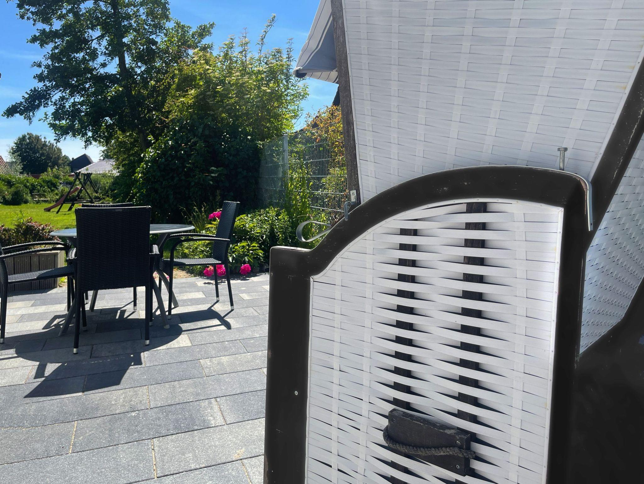 • Großer Garten mit Sitzmöglichkeiten, Terrasse, Strandkorb, Grill, Gartenmöbel