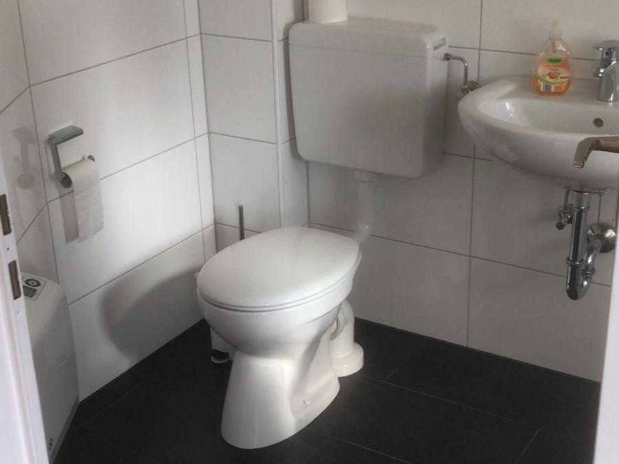Das Badezimmer mit Dusche, WC und Waschmaschine befindet sich im Erdgeschoss. Ein Fön ist im Haus verfügbar. Ebenso vorhanden sind ein Bügeleisen sowie ein Bügelbrett. Ein großer Flur bietet genügend Fläche für Kinderwagen, Gummistiefel und Garderobe. Im Bereich der Treppe ist ein kleiner Keller vorhanden. In jedem Schlafraum befindet sich ein Wäscheschrank.