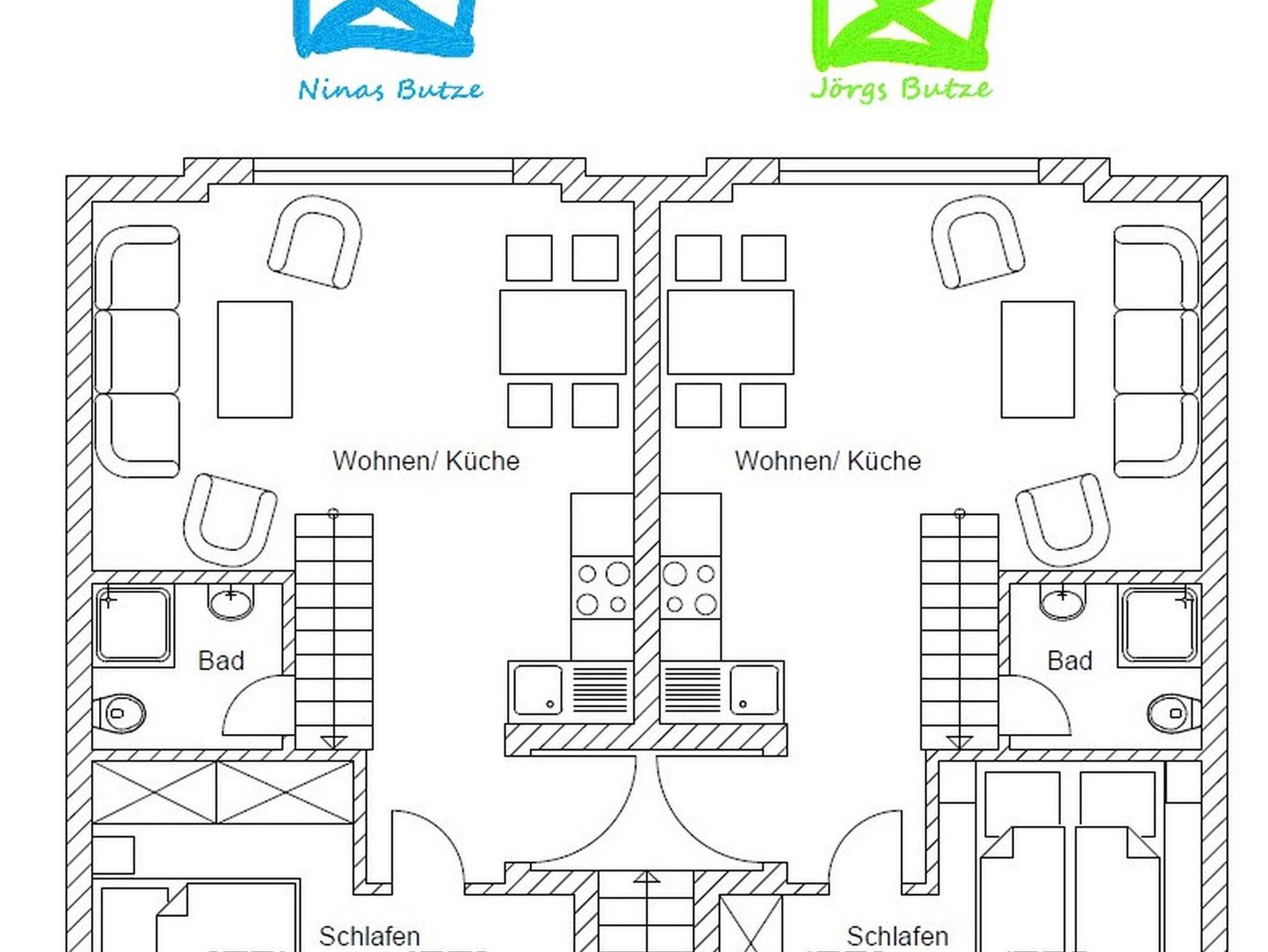 max. 8 Personen. Beide Butzen befinden sich in einem Hausflur gegenüberliegend. Über den Haupteingang hat man nur Zutritt zu den beiden Butzen. Wenn dieser verschlossen wird, können beide Butzen offen genutzt werden.