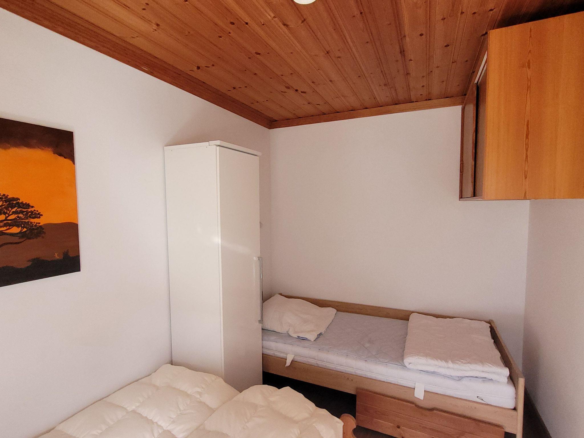 Schlafraum: kleines Doppelbett und ein Einzelbett, Kleider- und Wandschrank