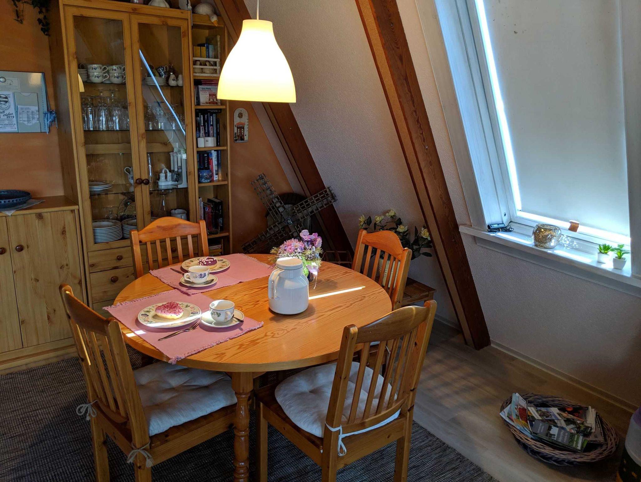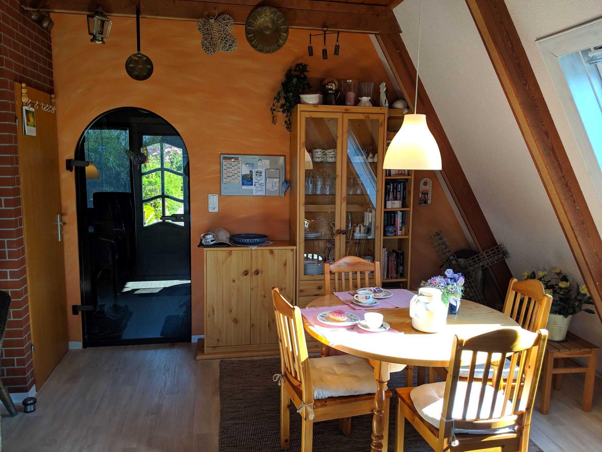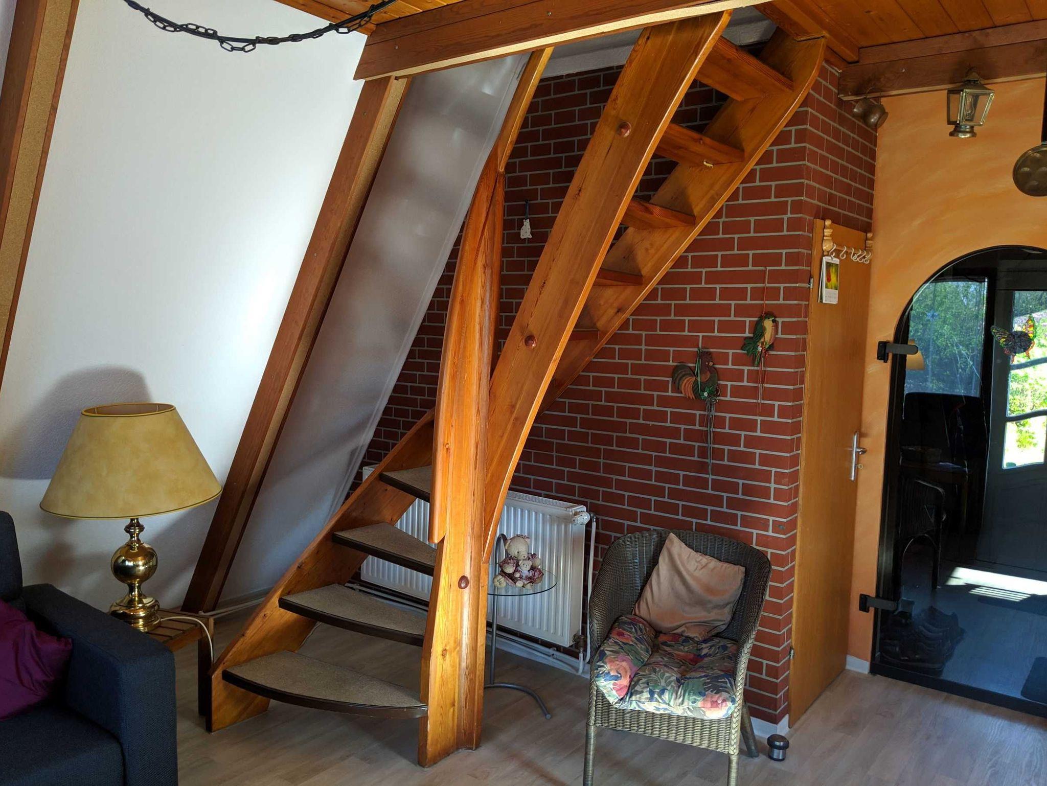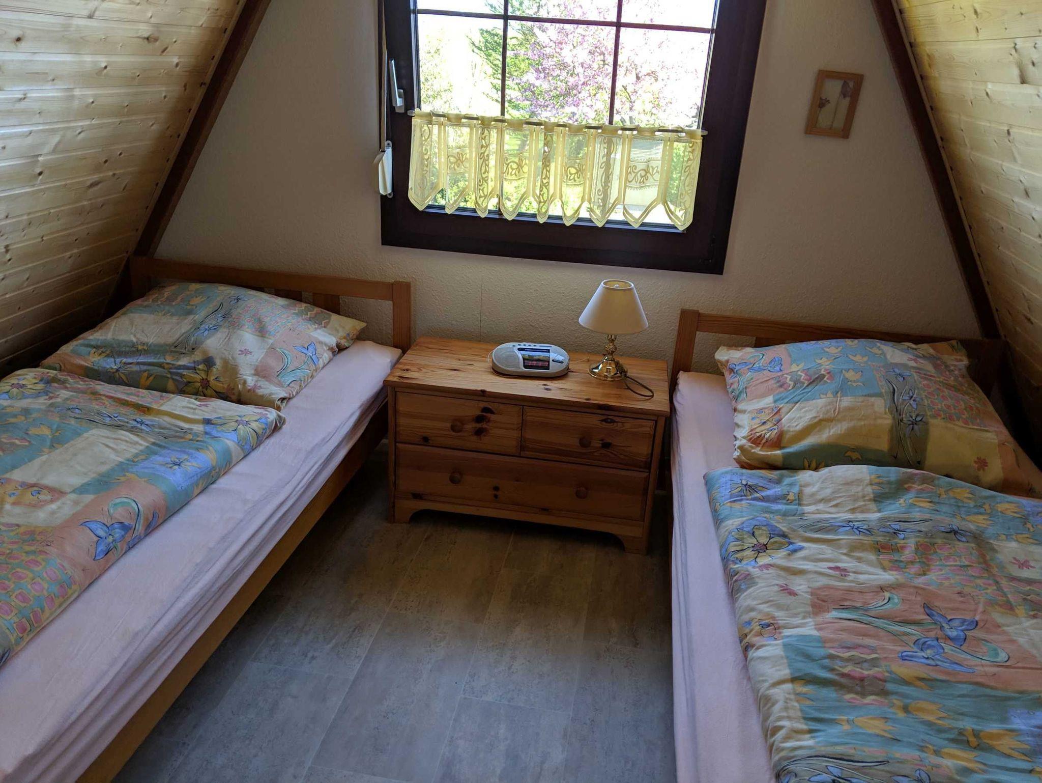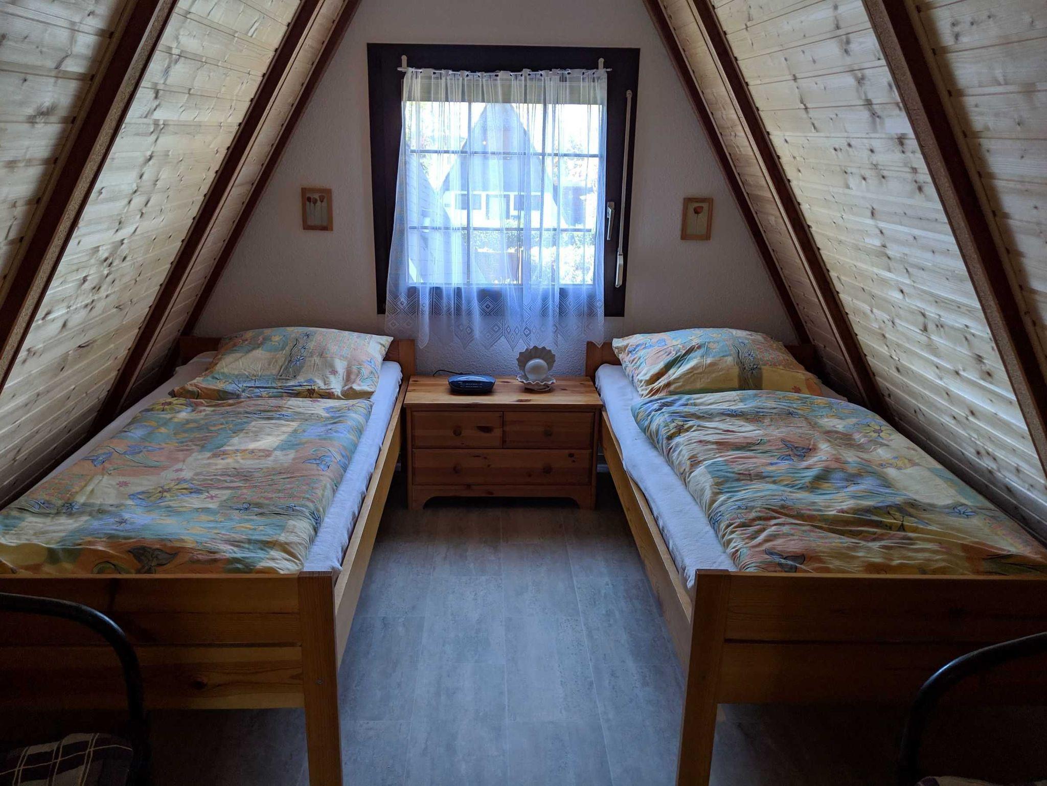 • 2 Schlafräume mit 4 getrennten Betten (es führt eine steile Treppe in den 1. Stock)